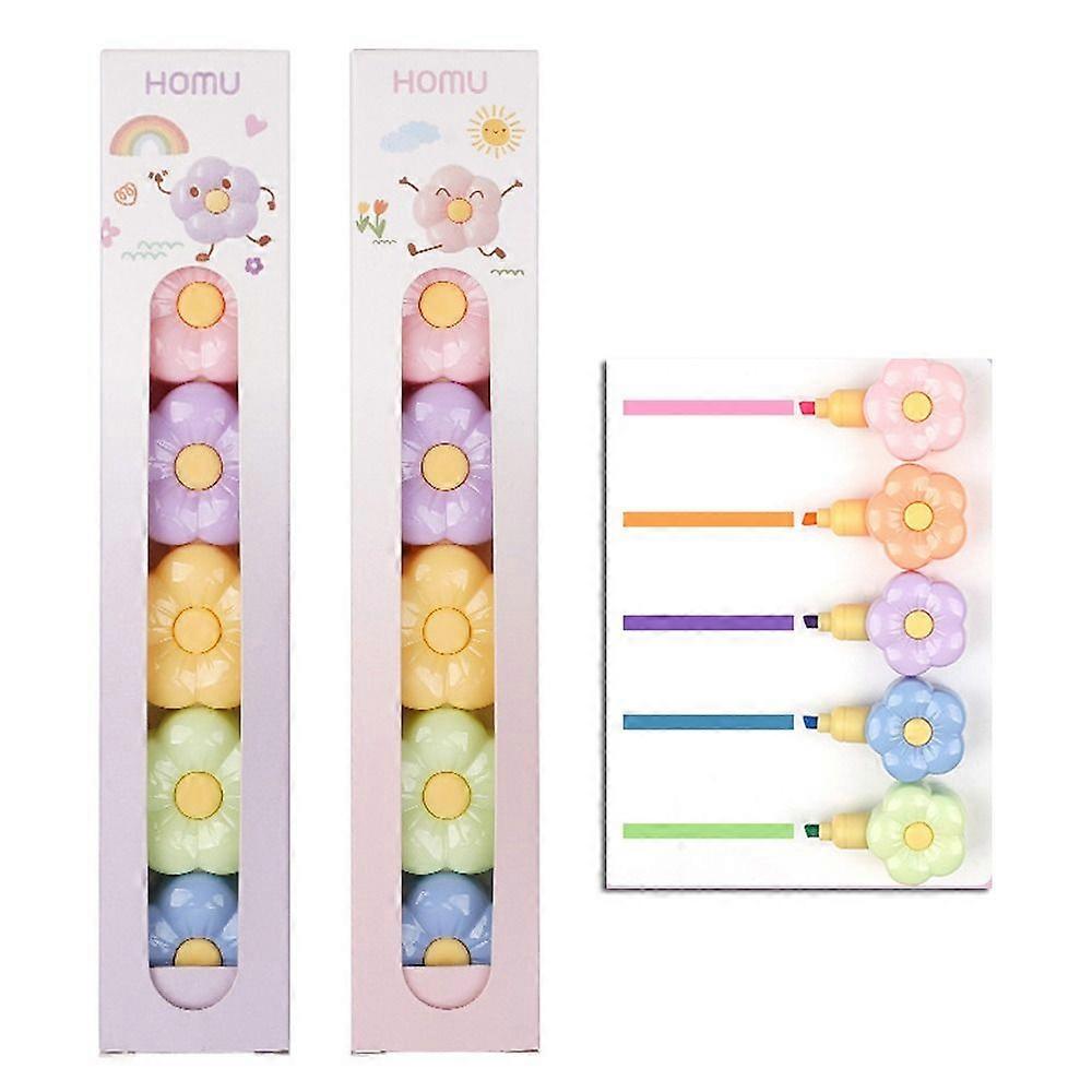 5Pcs/Box Cartoon Highlighter Cute Cat Claw Bear Heart Shape Line Color Marker Pen Color Hand Account Pen School Office Supplies