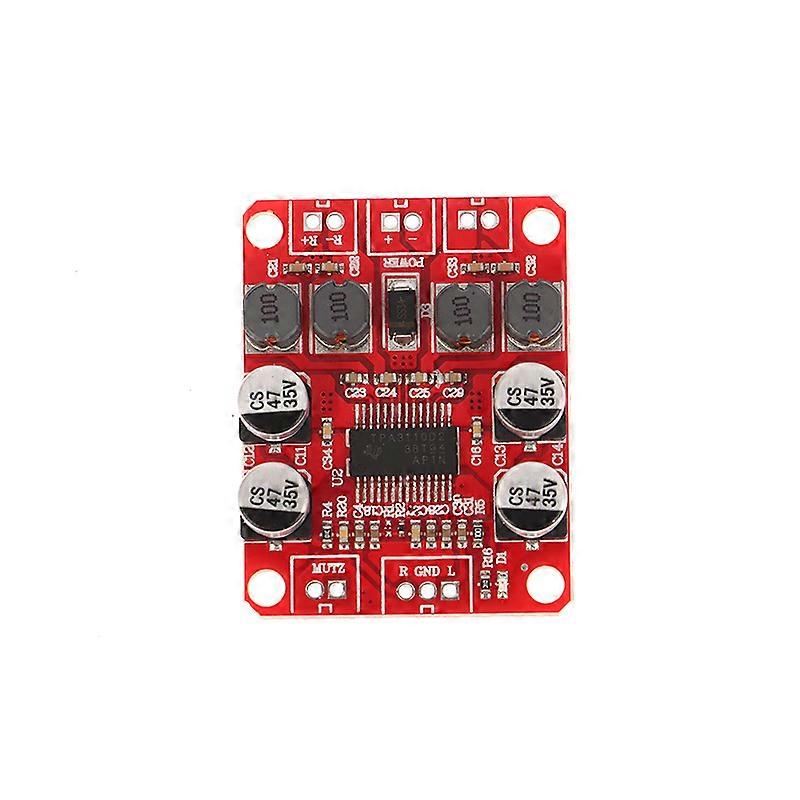 Power amplifier chip:TPA3110 Working voltage: 8/26VDC(power input with polarity protection) Recommended powersupply:12VDC current 2A Output power:2/15W Recommended speaker impedance: 4/10 ohms Mute interface: MUTE(generally suspended) Packing: 1Pc