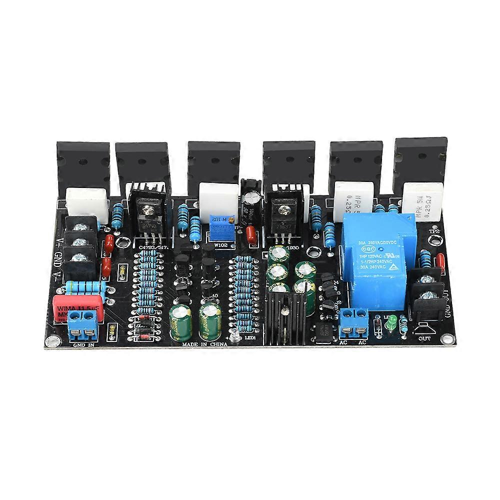 Product Features: 1. High power output, reaching up to 300W, effortlessly drives large speakers. 2. Utilises high-voltage-rated audio push-pull transistors for clear sound quality and exceptional stability. 3. Wide power supply range supporting ±20V-90V, accommodating diverse power environments. 4. Robust drive capability effortlessly powers 15-inch speakers with outstanding performance. 5. Compact dimensions facilitate installation, suitable for diverse audio systems. Product Description: This upgraded monoblock amplifier board features the 1943/5200 high-power push-pull output stage. Designed as a single-channel rear amplifier board, dual-channel operation requires two amplifier boards. Circuit design employs A970/C2240 high-voltage audio push-pull transistors in a dual differential configuration, with A1145/C2705 for voltage amplification. Medium-power A1837/C4793 transistors drive the output stage, utilising A1943/C5200 high-power push-pull transistors. The power supply range is exceptionally wide, accommodating DC voltages from ±20V to ±90V. Provided sufficient power is supplied, it effortlessly achieves an output power of 300W, delivering formidable drive capability that handles 15-inch speakers with ease. Product Specifications: Supply Voltage: DC ±20-90V (Recommended: ±20V-75V. Do not exceed voltage limits. Switching power supplies are unsuitable.) Output Power: 300W (8/ enclosure) PCB Dimensions: 150mm / 75mm Product Listing: 1x Amplifier Board