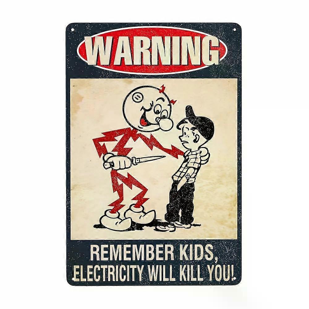Vintage Metal Tin Sign Warning"Electricity Will Kill You" Wall Decor compatible with Home Garage Bar Man Cave