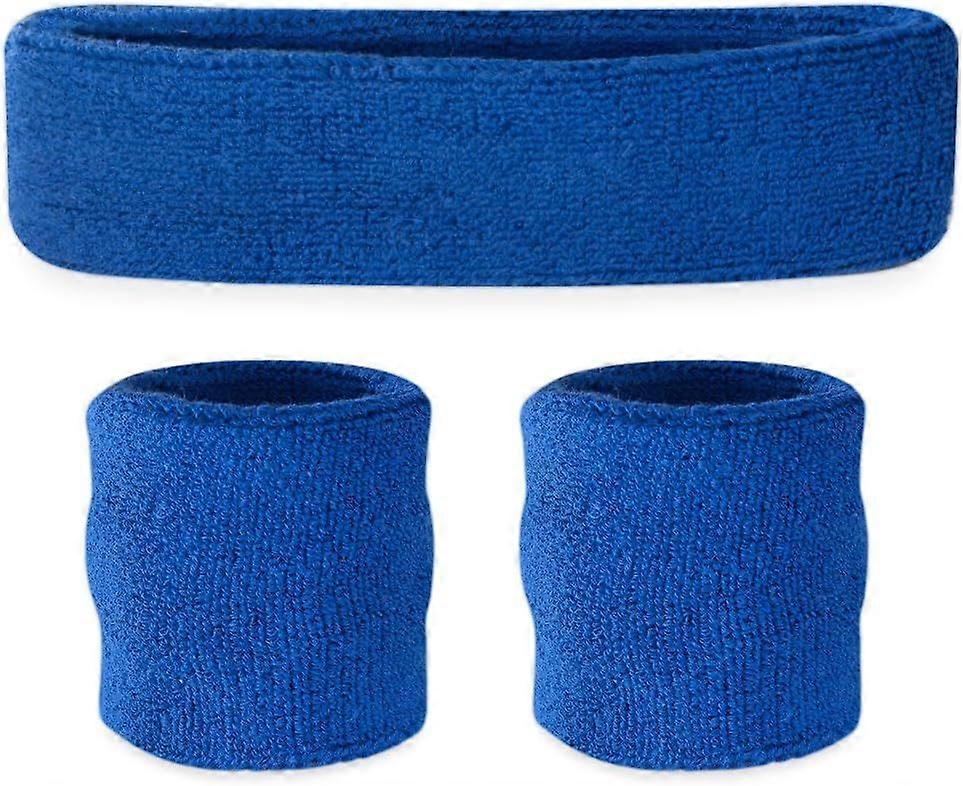 Sweatbands Set, Moisture Wicking 2 Wristbands and 1 Headband, Breathable Terry