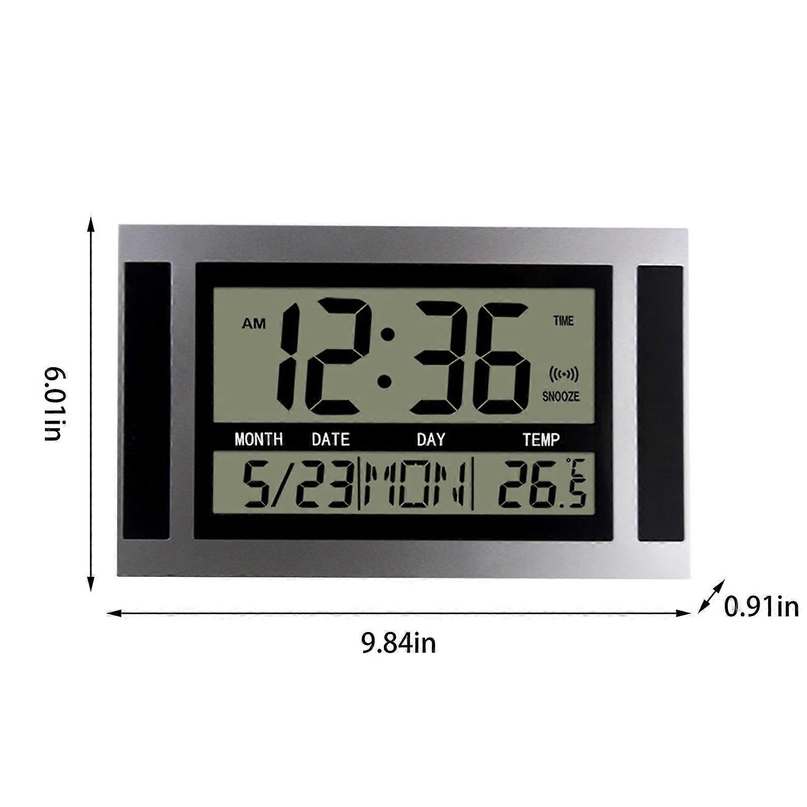 Large-Screen LCD Ultra-Quiet Electronic Wall Clock, Date, Time, Alarm Clock,