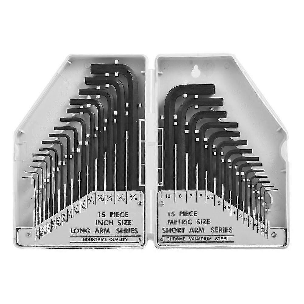 30-Piece Hex Key Set L-Shape Wrench Long Short Arm Hand Tools Metric Imperial Sizes