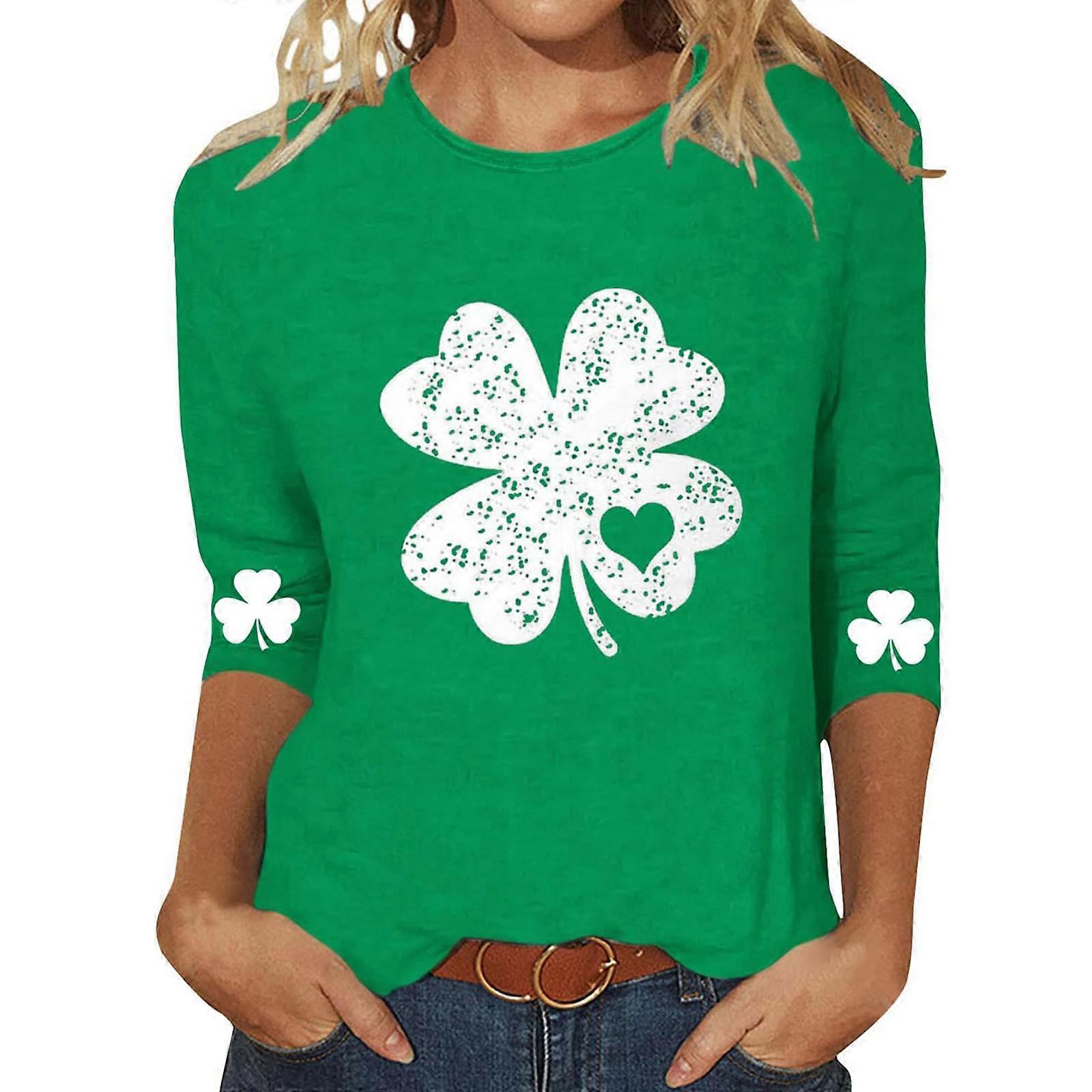 t Patricks Day Shirt Women 3/4 Sleeve Tops Shamrock Shirts Lucky Irish Shamrocks Outfit Turquoise XL
