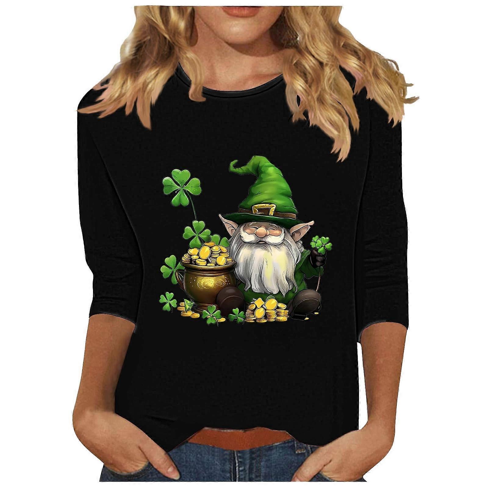 t Patricks Day Shirt Women 3/4 Sleeve Tops Shamrock Shirts Lucky Irish Shamrocks Outfit Yellow XL