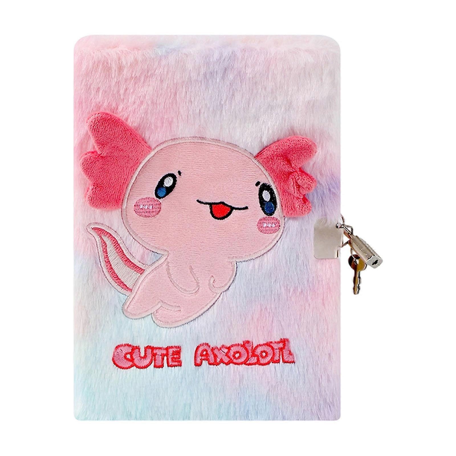 Adorable Plush Diary Notebook with Lock 5.71x8.46Inch Soft Furry Cover Travel Journal for Girl Teen Writing Note Taking Tie dye color