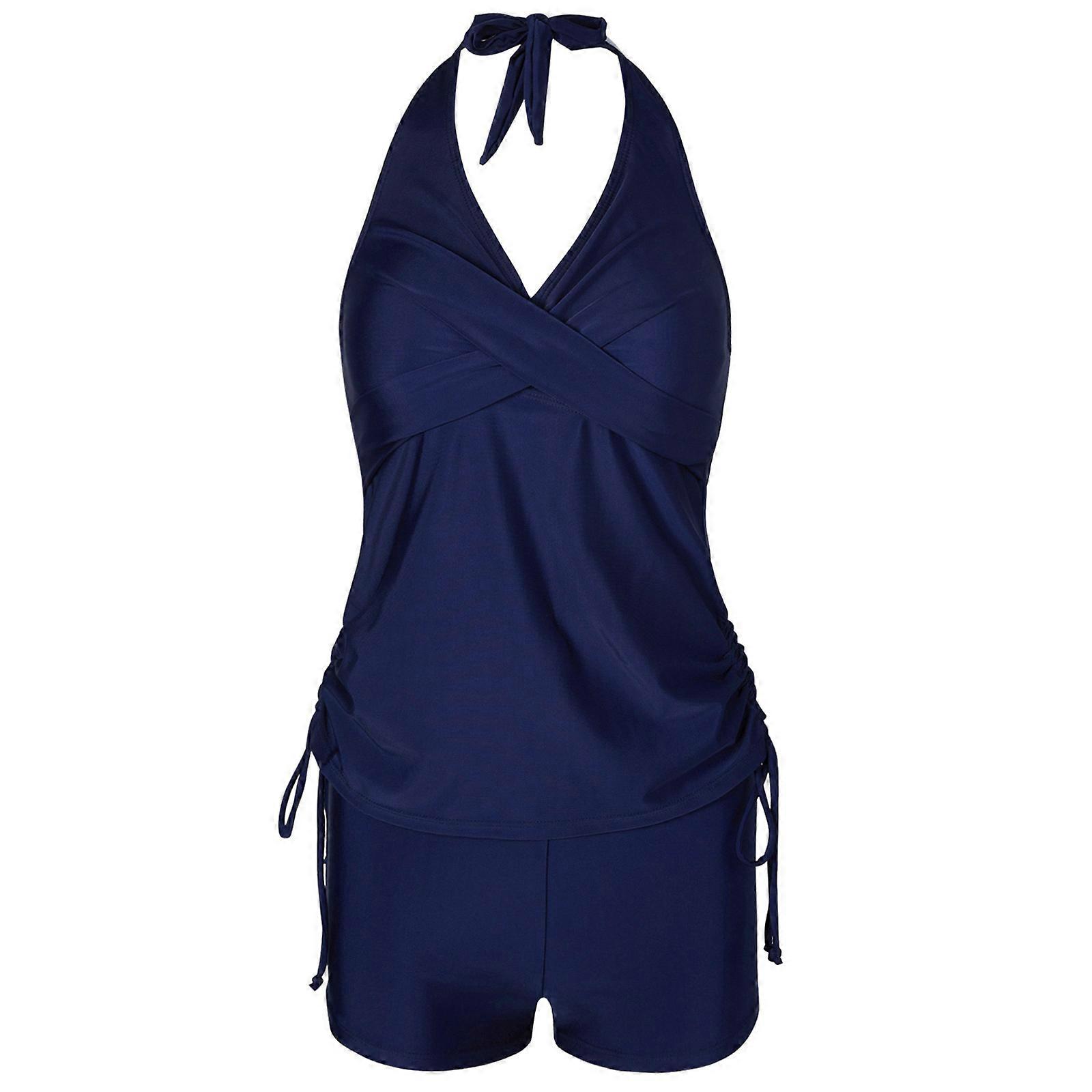 Women Two Piece Halterneck Tankini Swimming Costume Set Adjustable Strap Athletic Bathing Suit with Boyshorts for Beach Navy blue XL