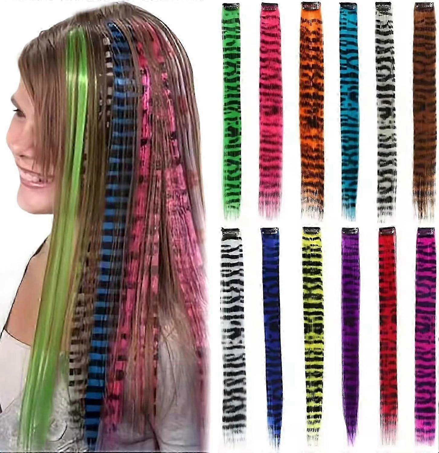 Raccoon Tail Wigs, 12 Pieces, 18-inch Striped Print Wigs, Synthetic Straightener Wigs, Suitable for Everyday Wear, Random Colors