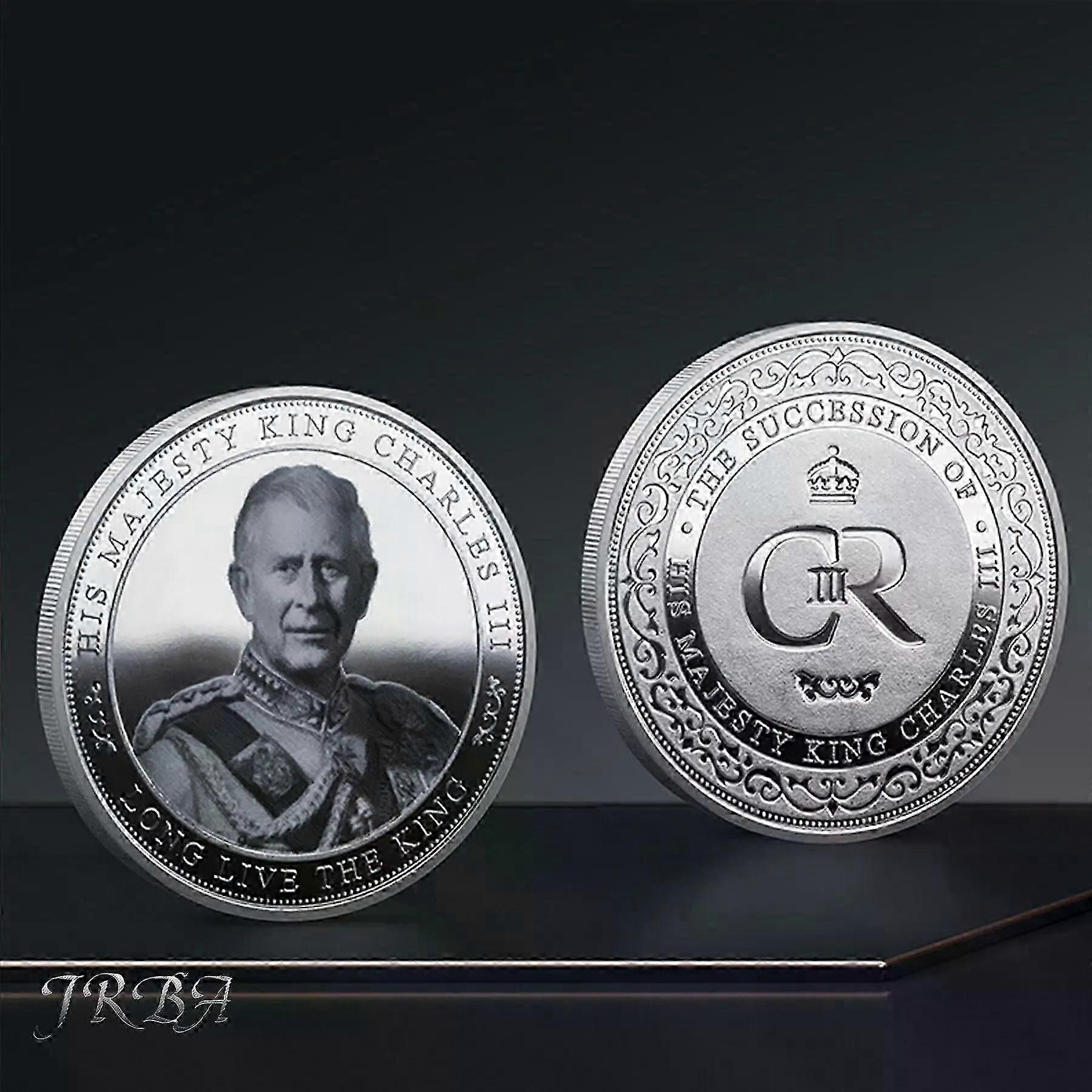 One silver-plated commemorative coin of King Charles III of Great Britain, with protective sleeve, a Royal Challenge keychain souvenir gift.