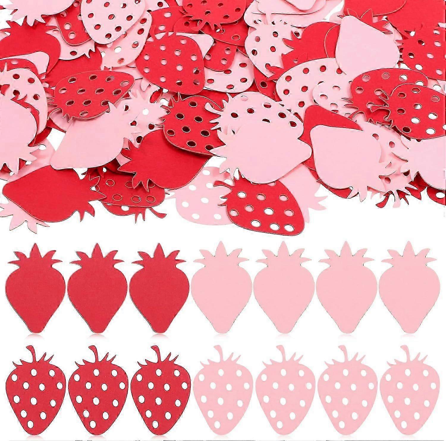 100 pink strawberry confetti, featuring pink and red strawberry patterns, perfect for birthday party decorations and baby shower decorations.