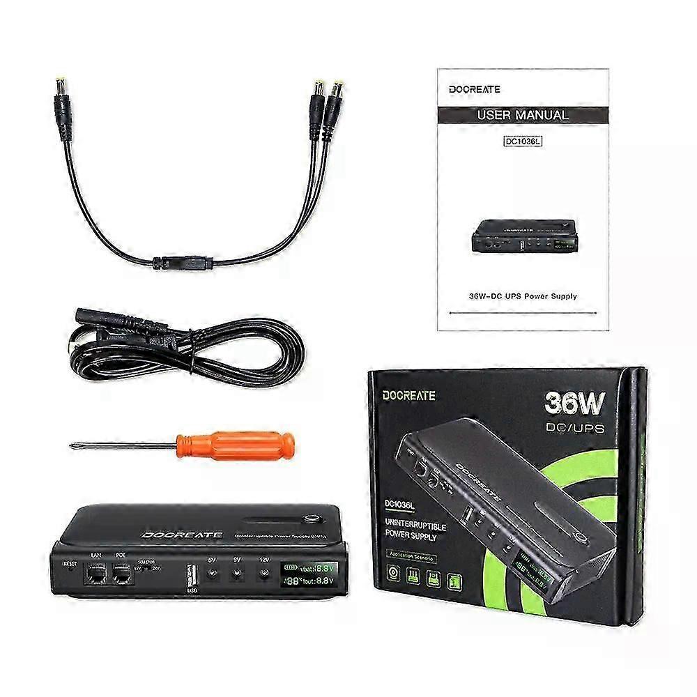 DC1036L 36W UPS Uninterruptible Power Supply (5V, 9V, 12V, 24V) - Fiber Optic Backup Charger for WiFi Routers (Batteries Not Included)