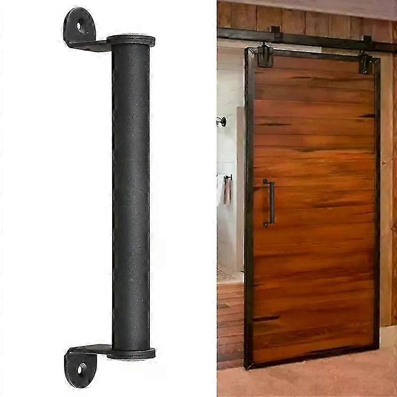 Two black carbon steel sliding barn door handles, suitable for garden gates and garages, hardware set.