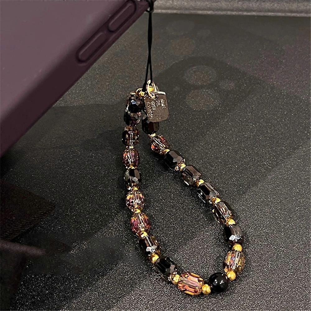 Cute Black Gold Crystal Beaded Phone Chain Women Fashion Kawaii Anti-Lost Phone Strap Luxury Phone Lanyard Gifts