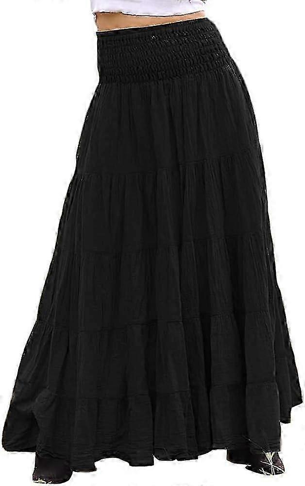 Style: High waist A-line design, umbrella skirt style, retro maxi skirt is a multi-layer design, elastic waistband, pleated design shows elegance, easy and comfortable to wear, with elastic band, making the waist look slimmer, beach skirt, more flowy relaxed and comfortable.Comfortable Materials: Made of 20% Polyamide and 80% Rayon. Very soft, elegant, light and comfortable, create a sense of hierarchy.Material:20% Polyamide+80% RayonMachine WashFastening: TieCocktailVariety of collocations: This elegant long skirt can match very well with your tops, T-shirts 0026 blouses, high heels, sandals and white shoes. Can also be worn with jackets and sweater tops and boots in winter. With its flowing quality and the wide, swinging hem, this skirt becomes an absolute highlight.Suitable OccasionThis Long Retro Maxi Skirt Suitable for Beach, Summer, Festivals, Casual, Shopping, Club, Daily Life, Club Party, Valentine's Day, Christmas and so on. Flowing pleated long skirt make you look more charming.Note: Due to different monitors, the picture may not always show the actual color. Before purchasing, please check the detail size of the product. Customer satisfaction is our top priority. We wish you a pleasant shoppingDesign: Long skirt, with elastic waistband, multi-layer graphic long design, loose fit. Casual yet stylish.Style: The loose version can cover the flesh of the stomach and thighs, loose long maxi skirt, radiate charming femininity and attract attention. Casual and elegant style that shows a different self. Skirt matching: You can combine it with any accessories you like to show your other self.