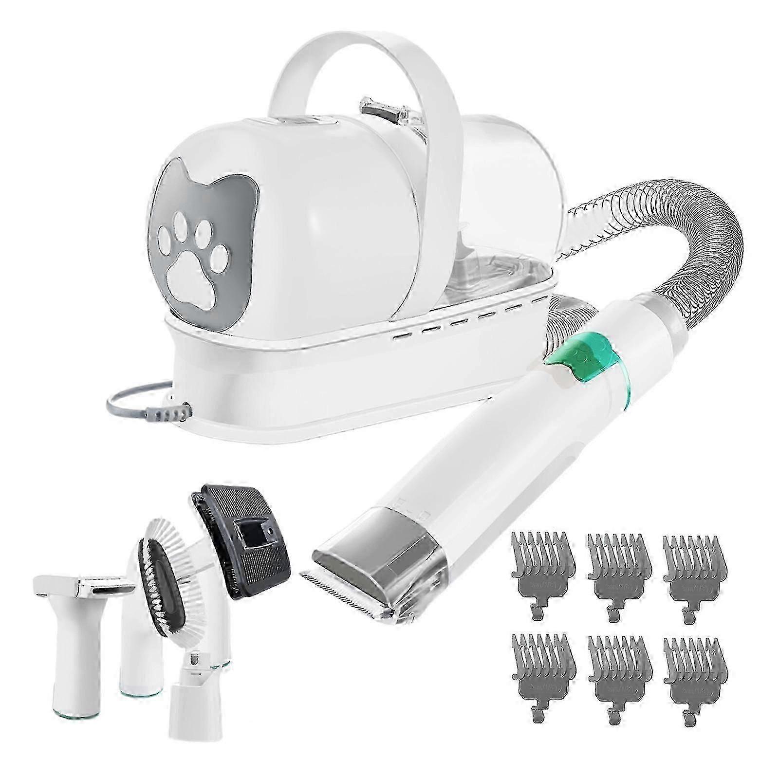 Gift for Your Pet:Versatile Pet Grooming Kit, 7 in 1 pet grooming kit, easily help you give your pet a good look without needing to go to the beauty salon. Powerful Performance: With a power of 400W and suction of 13000PA, this grooming kit ensures great performance. It features three adjustable levels to suit different needs and comes with six combs in sizes ranging from 3mm to 24mm for hair trimming.Large Dust Cup Capacity 0026 Long Hose: The device has a dust cup capacity of 1L which reduces the need for frequent emptying during use. The hose length is 2.5m, providing ample reach during grooming sessions.Low Noise Design: Made from ABS stainless steel material, the Pet Hair Vacuum Cleaner is designed to last while ensuring maximum comfort for your pet with its low noise level of up to only 69 dBA.Package Includes: The package includes a main unit, a shave tool, a nail trimmer, a vacuum cleaner, six combs of varying sizes (3mm -24mm), a cleaning brush, a makeup brush and a facial tool.Specification:Plug standard:UKSize Chart:28cmx12cmx21cm\/11.02inchx4.72inchx8.27inchPackage Includes:1 main unit,1 shave tool,1 nail trimmer,1 vacuum cleaner,6 combs of varying sizes (3mm -24mm),1 cleaning brush,1 makeup brush,1 facial tool