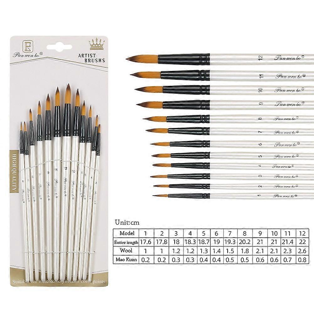 12Pcs Nylon Watercolor Brush Set Soft Hair Pointed Round Flat Head Painting Brushes Artists Beginner's Art Hand Drawn Watercolor
