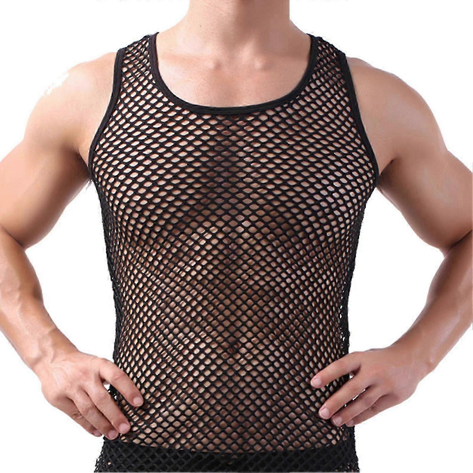 Men's Mesh Undershirt See-Through Vest for Sleepwear Pure Color Fish Net Design for Sleeping