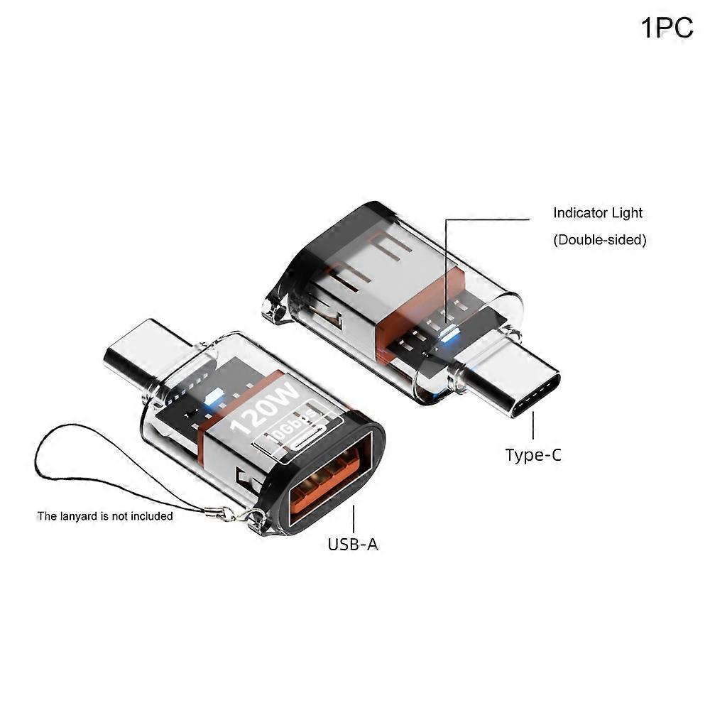 [DETAIL]<br>Brand new and high quality<br>Material: PC<br>Function: Charging/Data Transmission/OTG<br>Indicator Light: Double-sided Blue<br>Transmission Rate: 10Gbps Maximum<br>Power: QC5/9/12V<br>Compatibility: Suitable for various USB-A and USB-C devices<br>Features:<br>1. High-Speed Data Transfer: This adapter supports USB 3.2/Gen 2 technology, providing ultra-fast data transfer speeds of up to 10Gbps. Whether you're transferring large files, streaming high-definition media, or syncing data between devices, this adapter ensures efficient and speedy performance.<br>2. Powerful 120W Charging: Designed to support up to 120W charging, this adapter can handle the fast charging needs of a wide range of devices. It ensures that your devices are charged quickly and safely, making it an ideal choice for both everyday use and travel.<br>3. OTG Functionality: With On-The-Go (OTG) support, this adapter allows you to connect USB devices directly to your smartphone or tablet. This feature provides enhanced versatility, enabling you to use peripherals like USB drives, keyboards, and mice with your mobile devices.<br>4. Dual-Sided Design: The adapter features a dual-sided USB connection, making it easy to plug in without worrying about the orientation. This user-friendly design ensures a hassle-free experience and enhances convenience.<br>5. Transparent and Durable Construction: The sleek, transparent design not only looks stylish but also allows you to see the high-quality internal components. Made from durable materials, it ensures long-lasting performance and resistance to wear and tear.<br>Package Including:<br>1 x Type-C to USB-A Converter<br><br>[ATTRIBUTES]<br>- High-concerned chemical: None<br>- Type: Cable Adapter<br>- Origin: Mainland China<br>- High-concerned chemical: None<br>- Type: Cable Adapter<br>- Origin: Mainland China