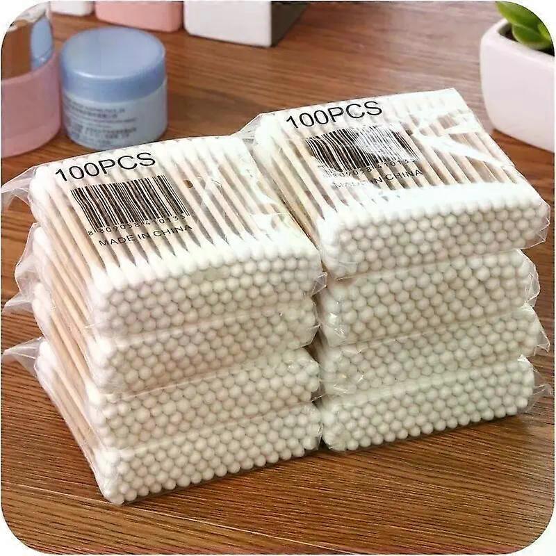 500pcs Double Head Wood Cotton Swab Nose Ears Cleaning Women Makeup Tools Lipstik Cotton Buds Tip Sticks