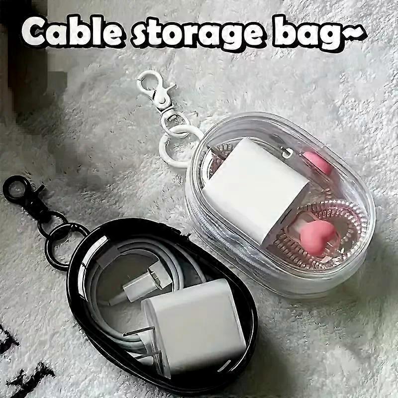 Portable Mini Transparent Storage Bag with Zipper Multifunctional Headphone and Charger Case Travel Accessories with Keychain