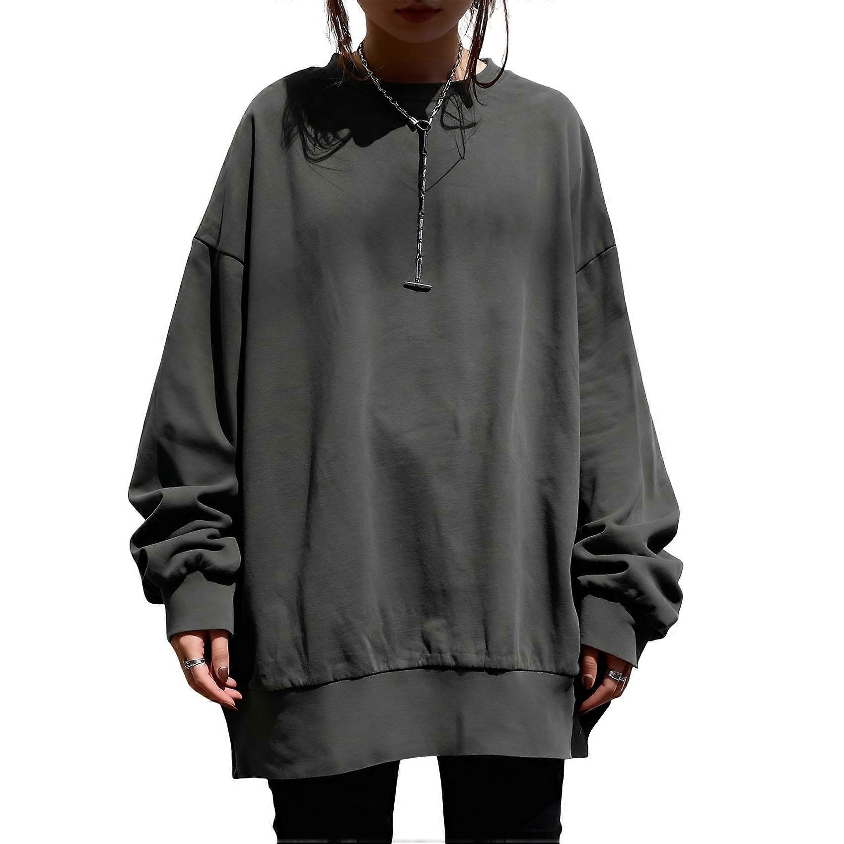 Women'S Crew Neck Oversized Sweatshirts Long Sleeve Casual Loose Pullover Tops Solid Color Fall Clothes Gray L