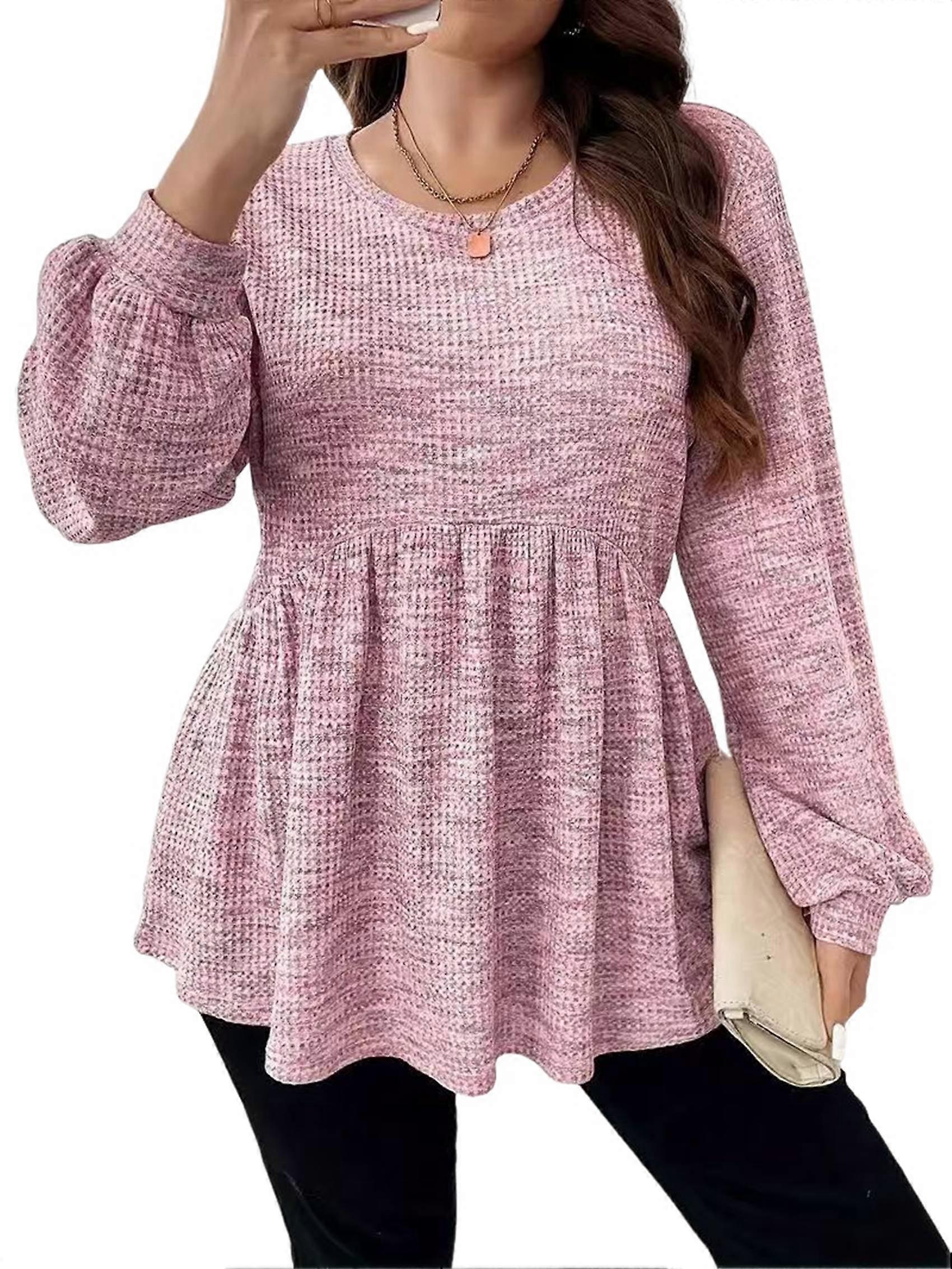 Women'S Plus Size Long Sleeve Peplum Casual Slim Fit Pullover Crew Neck T-Shirt Jumper Tops Pink XXL