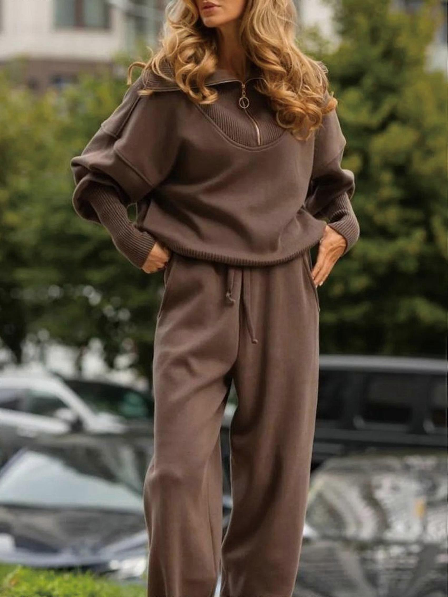 Women Fleece 2 Piece Outfits Sweatsuit Zip Up Pullover Sweatshirt Joggers Pants Tracksuit Set Brown M