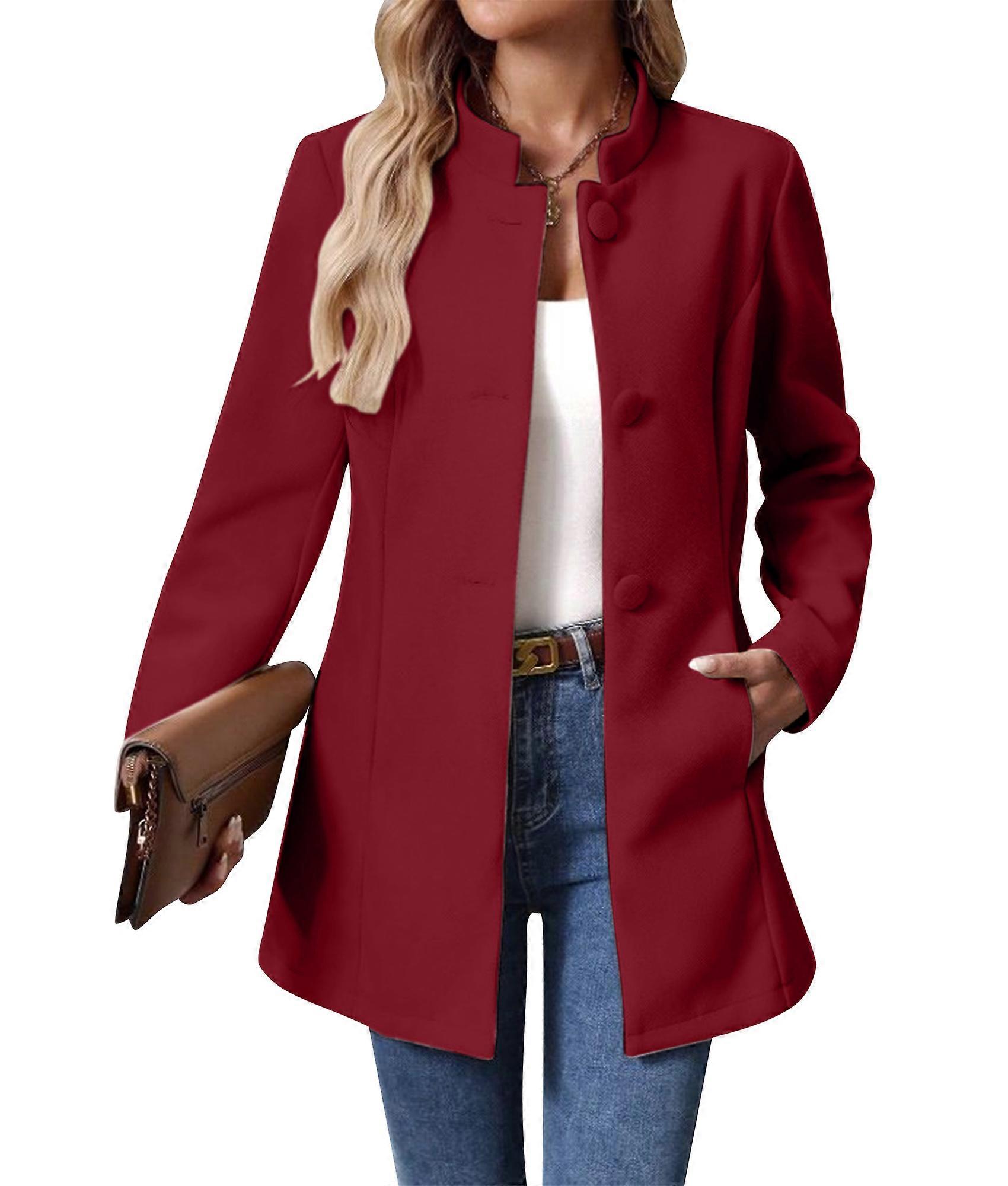 Women'S Winter Overcoat Mid-Long Long Sleeve Stand Collar Single Breasted Coat Outerwear Deep Red XL