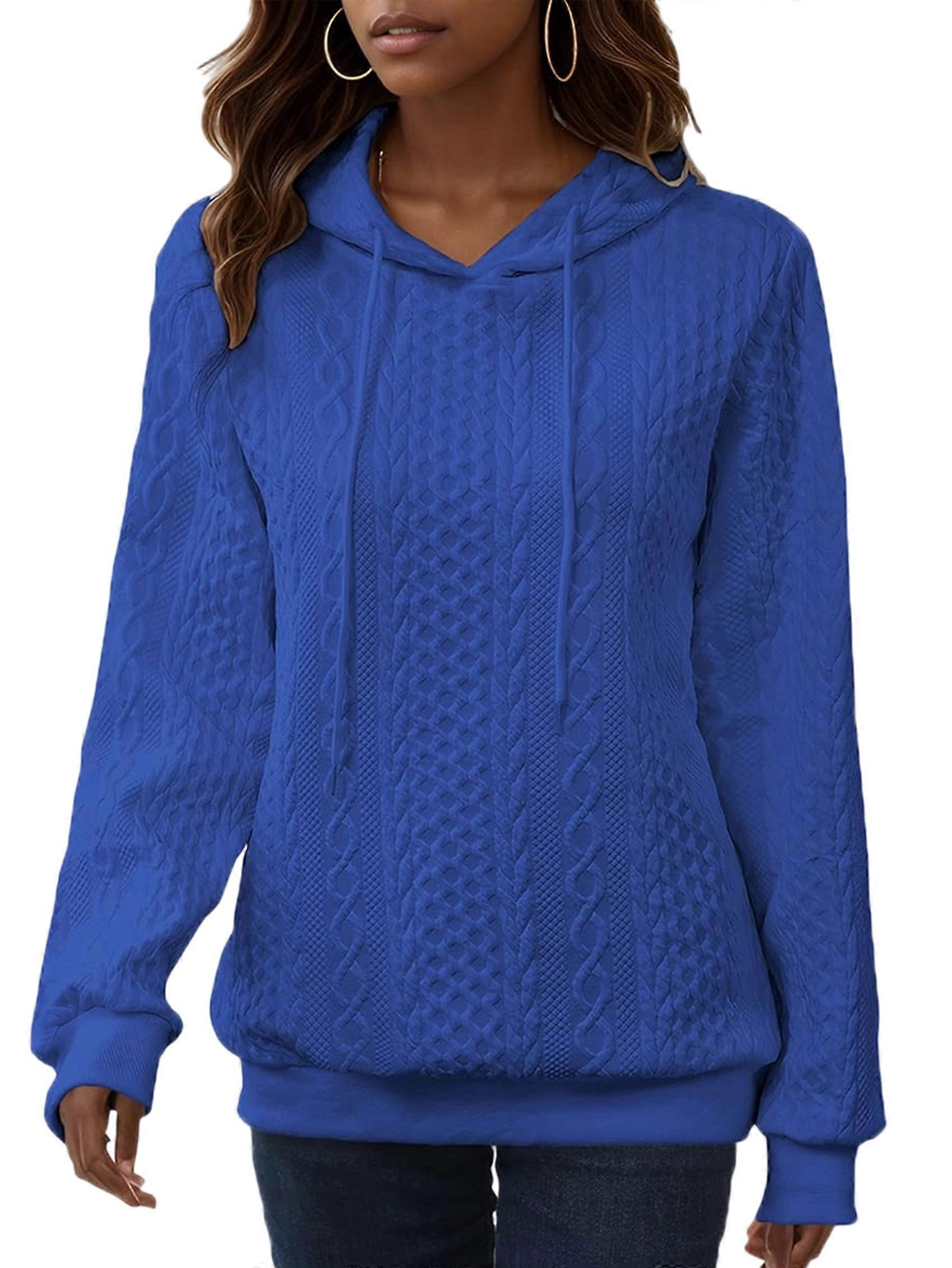 Female Hoodies Oversized Hooded Sweatshirt Casual Long Sleeve Drawstring Pullover Tops Blue L
