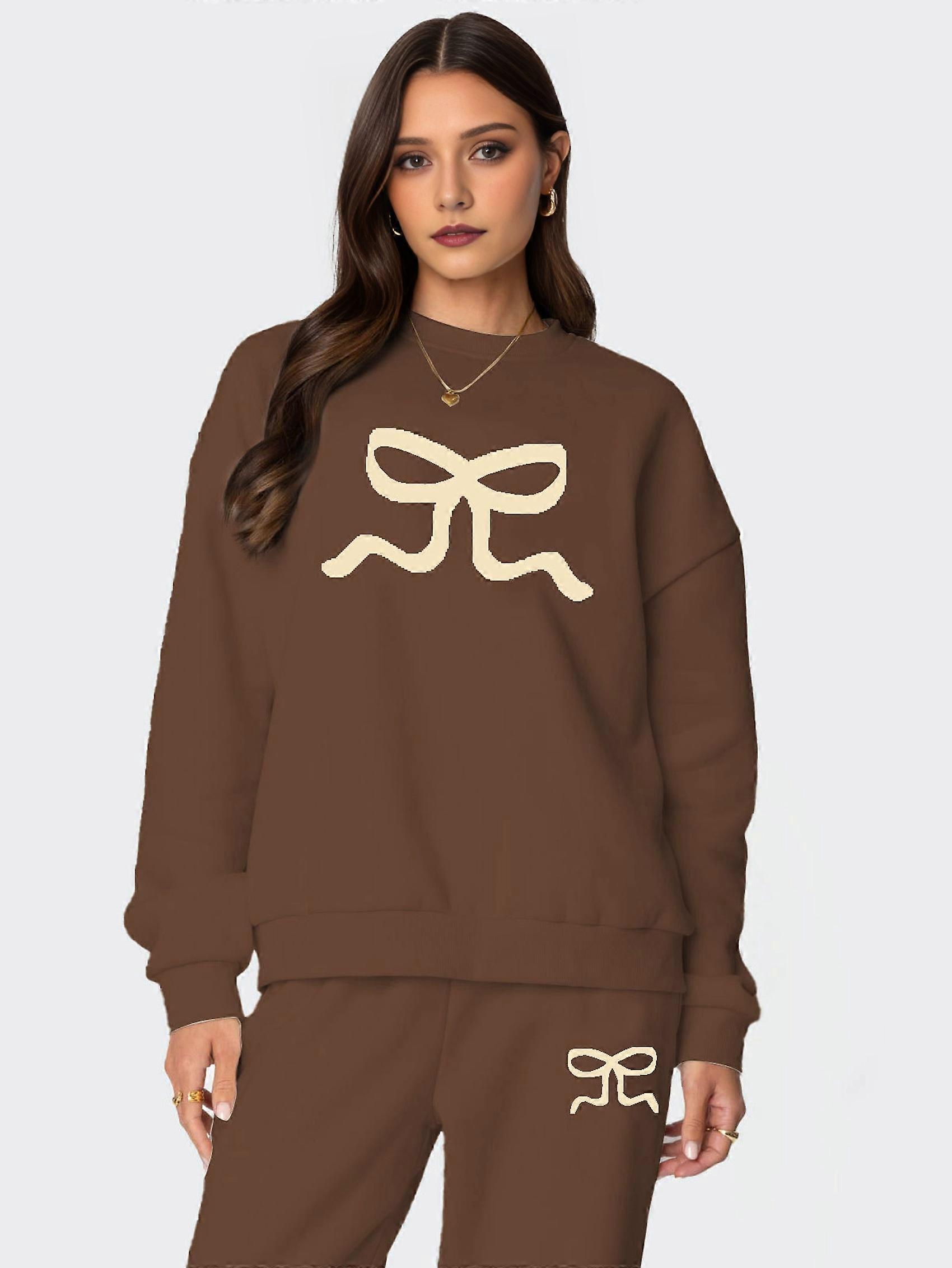 2 Piece Lounge Sets for Women Long Sleeve Crew Neck Print Matching Tracksuit Dark Brown S