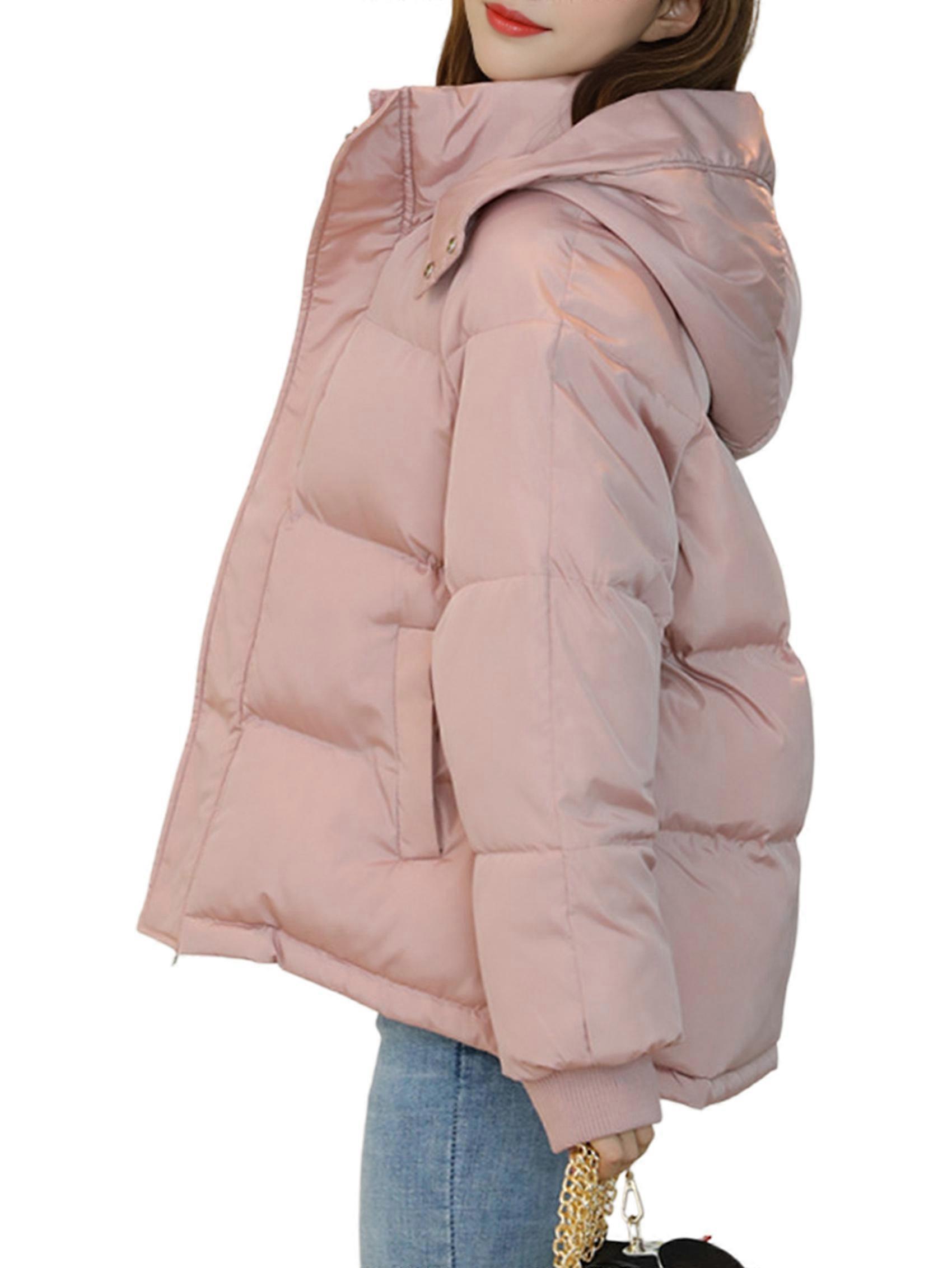 Women Puffer Jacket Winter Warm Coats Hooded Quilted Jackets with Removable Hood Pink M