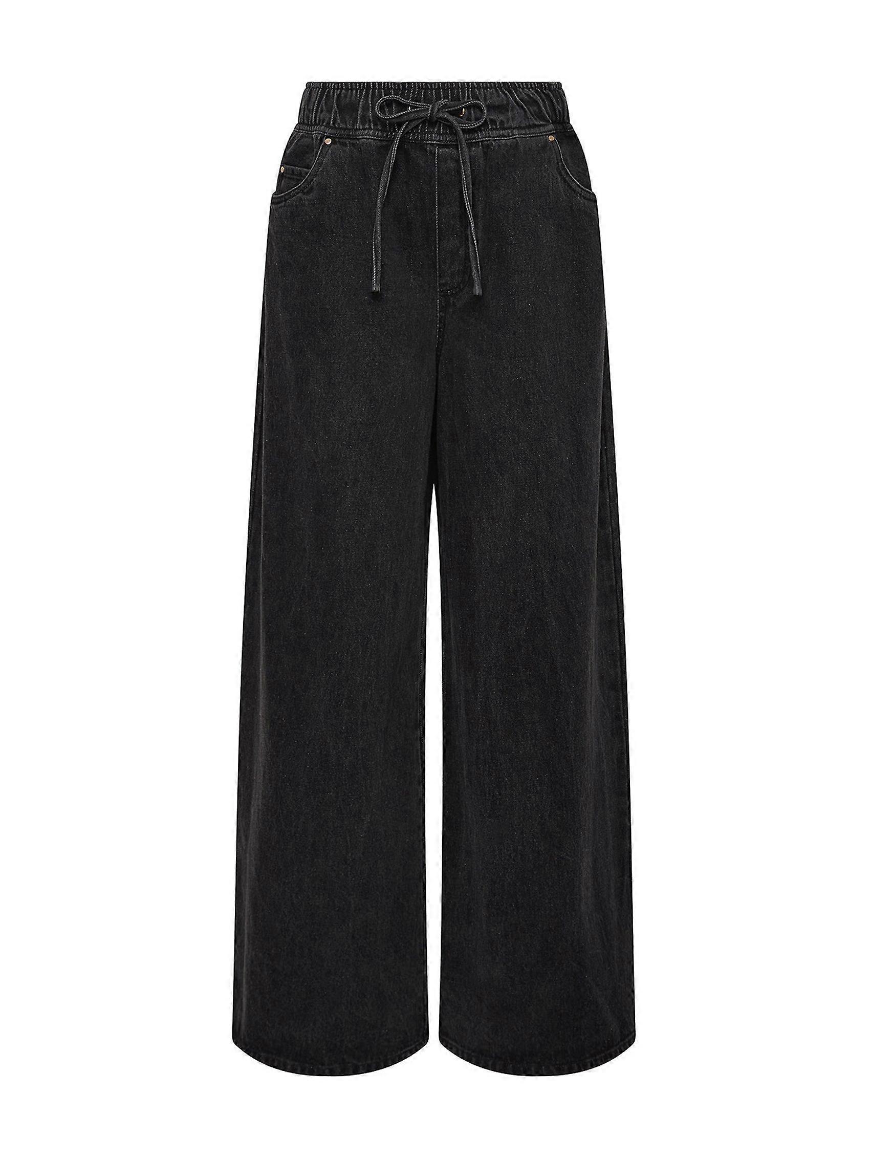 Women'S Drawstring Wide Leg Jeans Low Waisted Loose Fit Denim Pants Black L