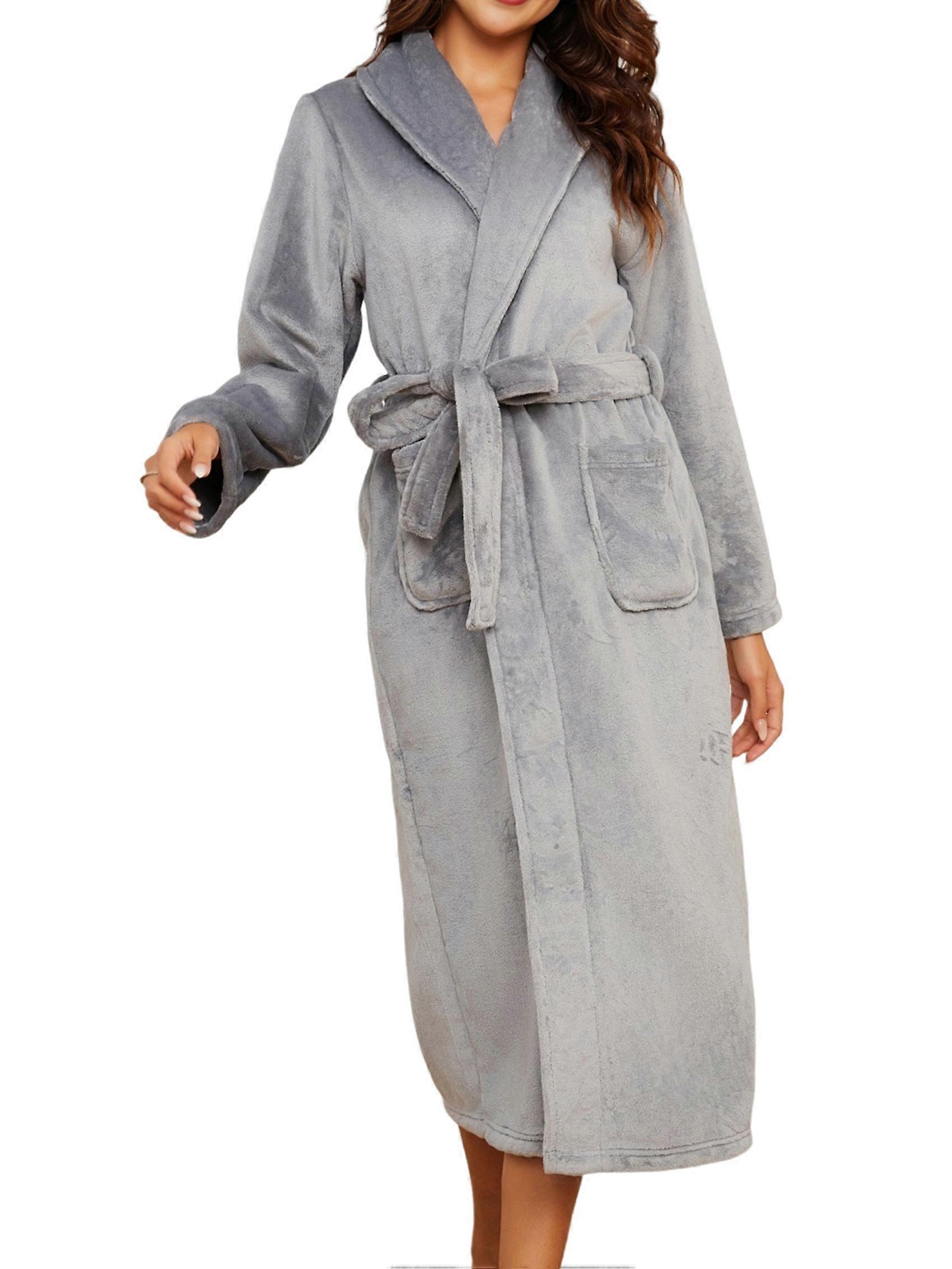 Plush Robe for Women, Long Flannel Winter Bath Robe, Plus Size Gray M