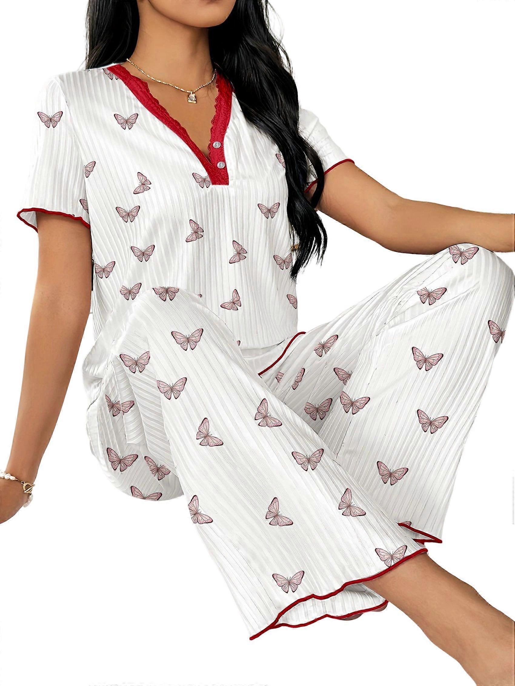 Female 2 Piece Pajama Sets Fall Pajamas Cute Pj Set Button Shirt Lounge Pjs Butterfly S