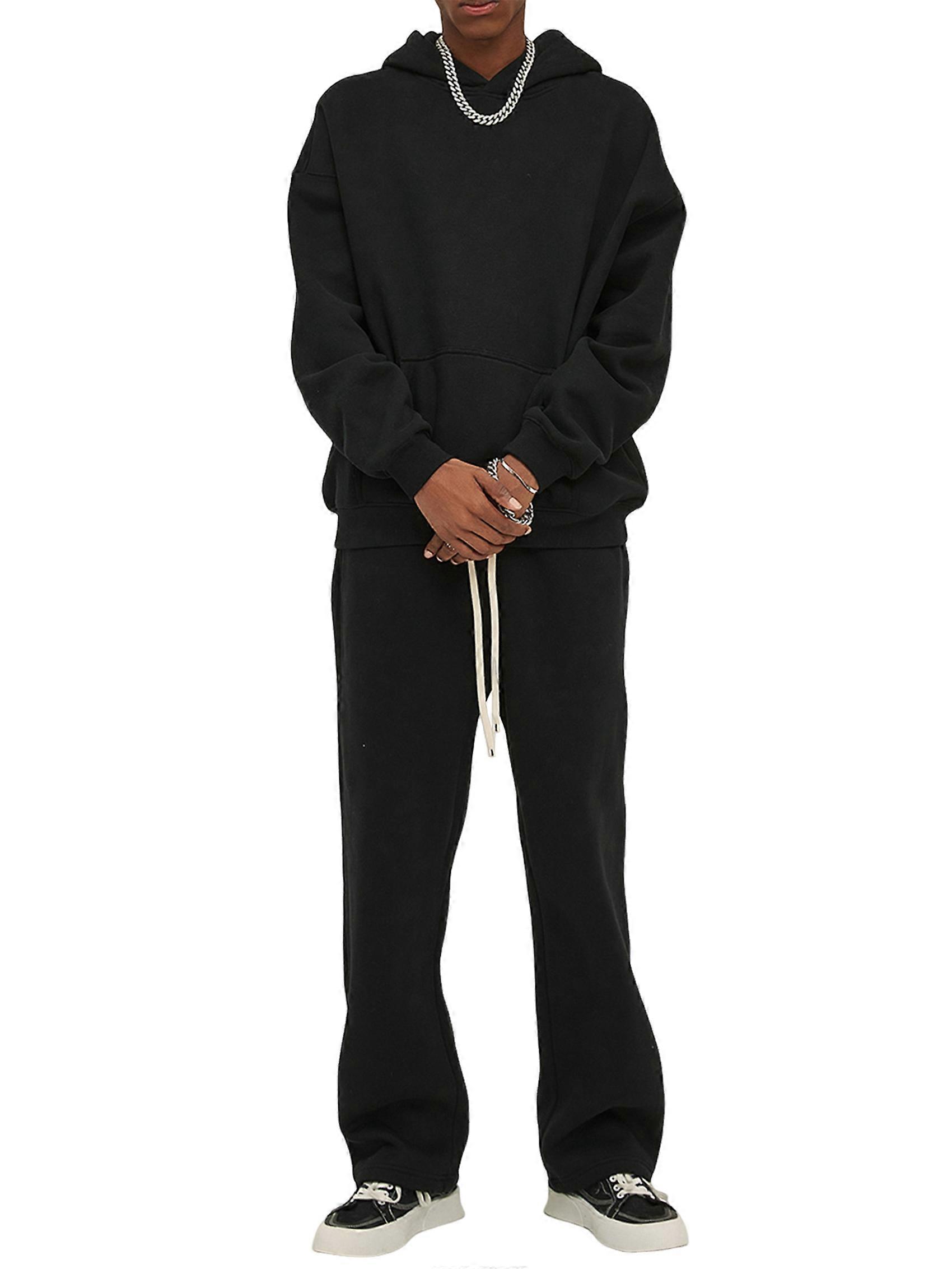 Women'S and Men'S Oversized Thick Long-Sleeved Hooded Pullover Solid Color Sweatshirt Black S
