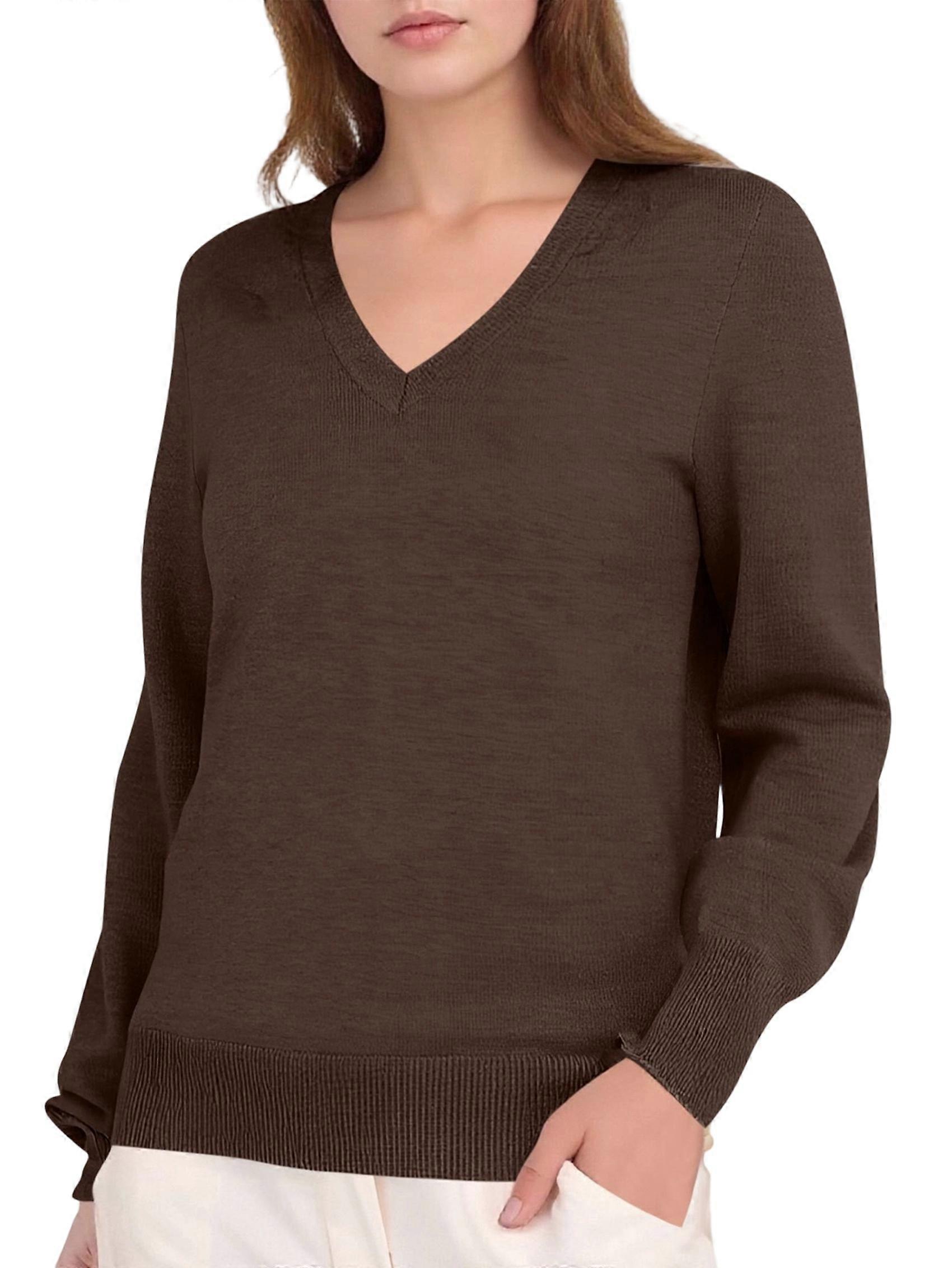 Female Long Sleeve V Neck Sweaters Fall Casual Classic Soft Loose Fit Basic Pullover Jumper Top Dark Coffee XXL