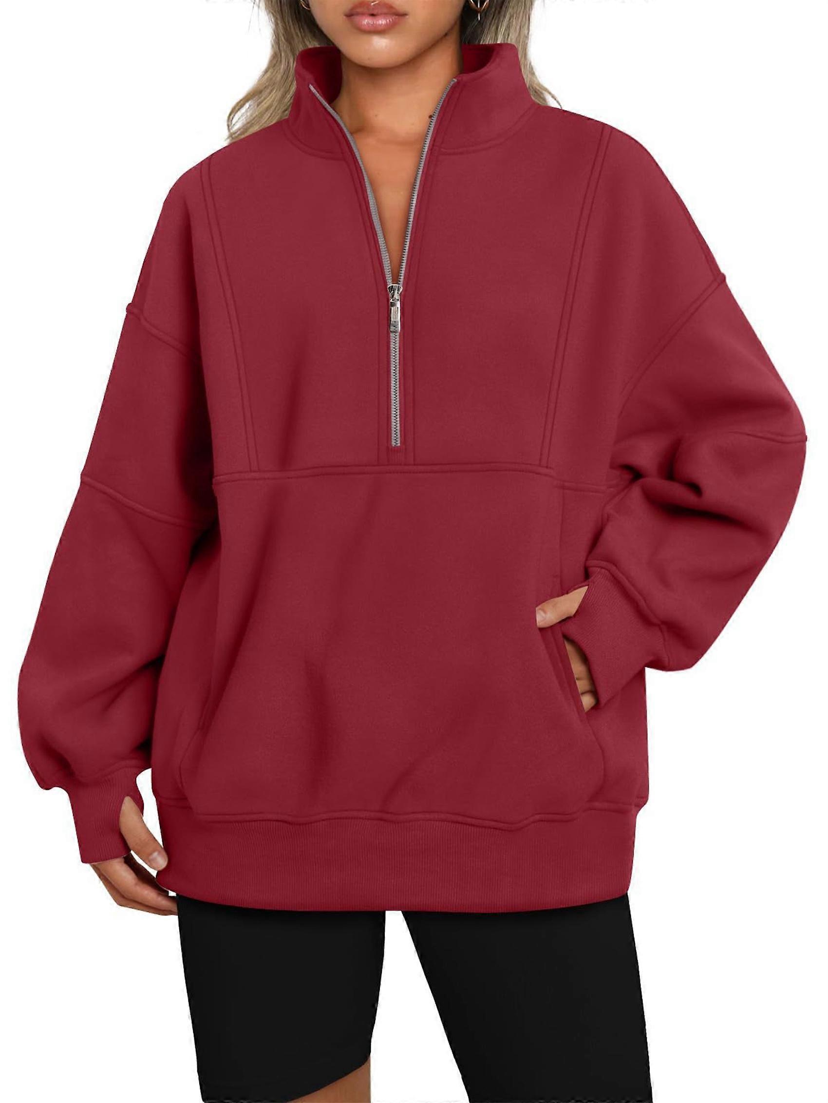Sweatshirt for Women Fall Half Zip Pullover Oversized Fleece Mock Neck Hoodies Fashion Outfits Winter Clothing Red M