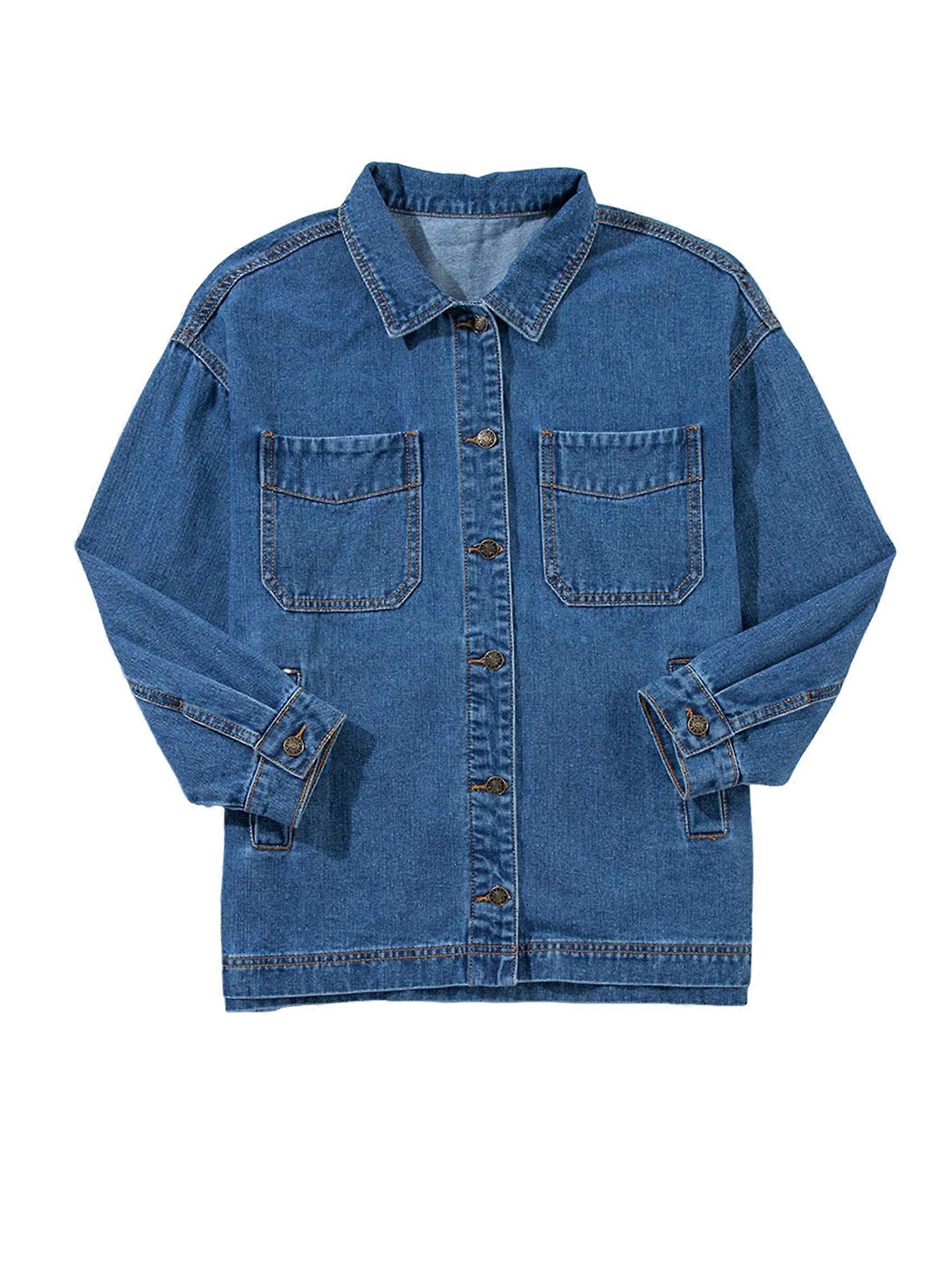 Women'S Jean Jacket Oversized Boyfriend Button Up Long Sleeve Split Zimbaplatinum Denim Jackets Royal Blue XL