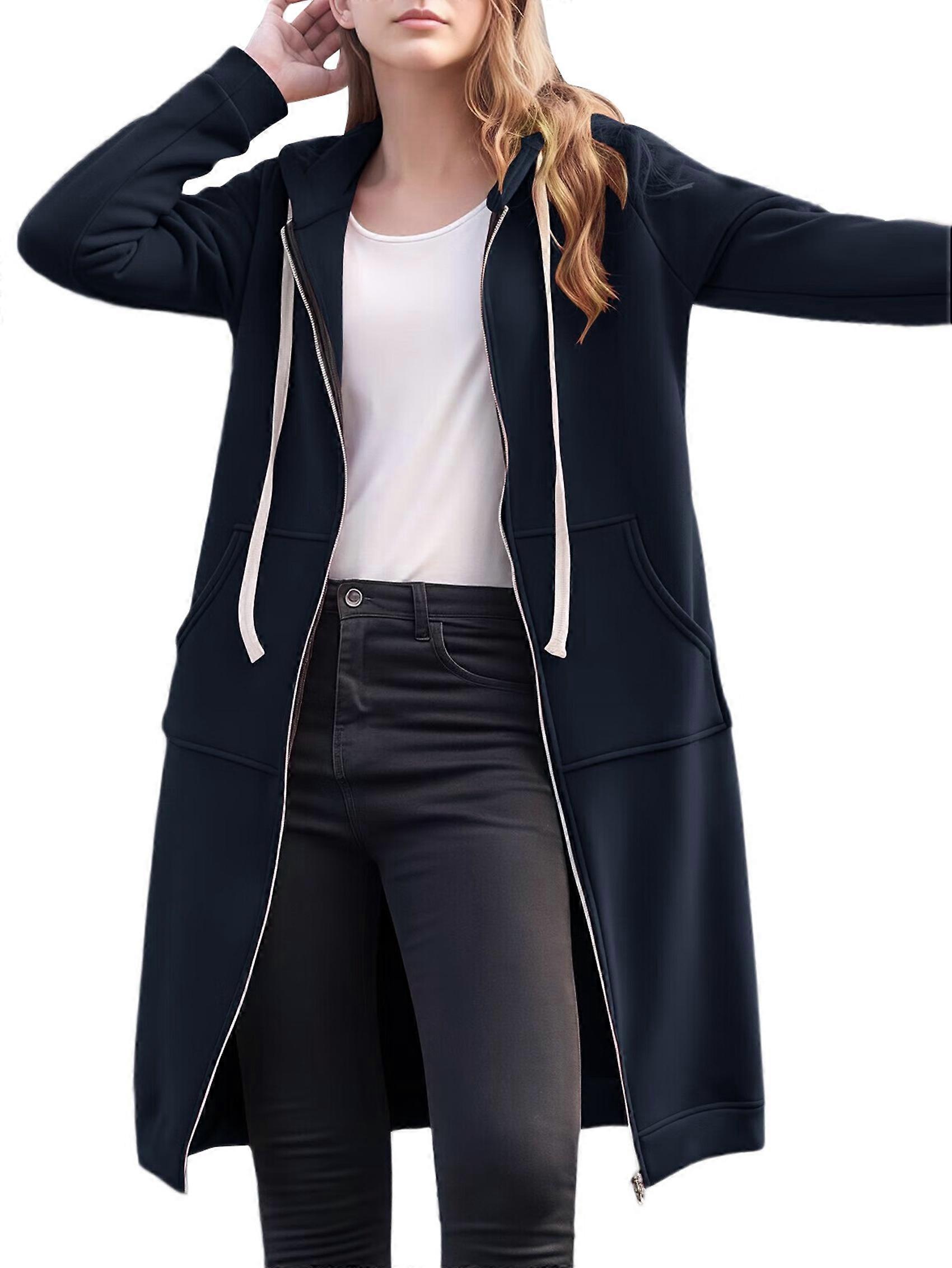 Crafted from 100% Polyester, this women's hoodie features a premium, super soft, and thick fabric. Its comfortable, non-stretch construction and plush lining provide exceptional warmth for cool autumn and winter days. Designed with a relaxed, long-line fit, this hoodie offers full coverage for the back and hips. It includes long sleeves, a generous oversized cut, two side pockets, an adjustable drawstring for a customized fit, and a full-zip front for easy wear. This versatile hoodie effortlessly complements your wardrobe, pairing easily with jeans, casual pants, sneakers, or boots. Its timeless solid color makes it a perfect choice for creating chic and stylish looks throughout spring, autumn, and winter. Perfect for every occasion, from casual everyday wear and office settings to holiday outings and date nights. This stylish long jacket can be worn open or zipped up for a variety of looks, ensuring you stay stylish even in the colder months. Size: XXXL=US14=EU46=UK18(cm / inch) Bust: 125.0 / 49.21, Sleeve: 62.0 / 24.41, Length: 104.0 / 40.94 Colour: Navy Blue Material: 100% Polyester Package Contents: 1 * Womens Hoodies Sweatshirts Coat Only the above package content, other products are not included. Note: Light reflection and different displays may cause the color of the item in the picture a little different from the real thing. The measurement allowed error is +/- 1-3cm.