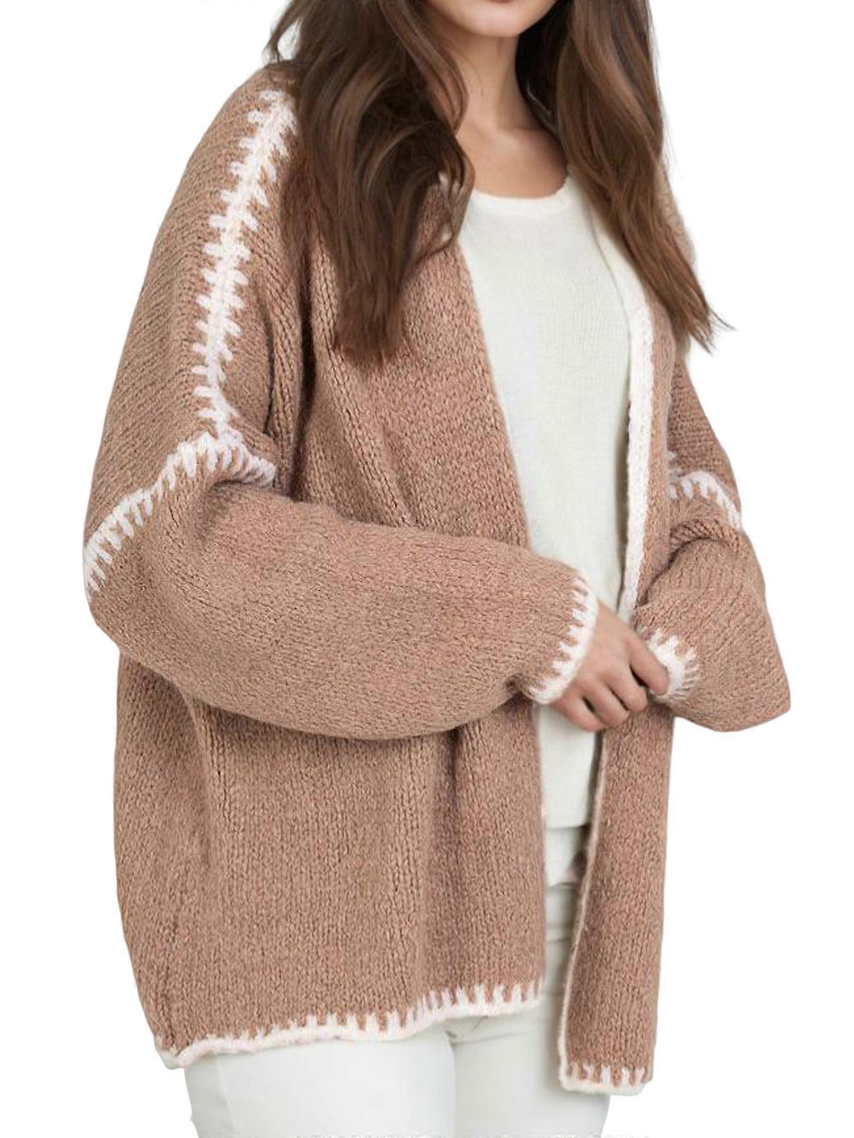 Women'S Oversized Cardigan Sweaters Fall Long Lantern Sleeve Knit Open Front Lightweight Khaki S