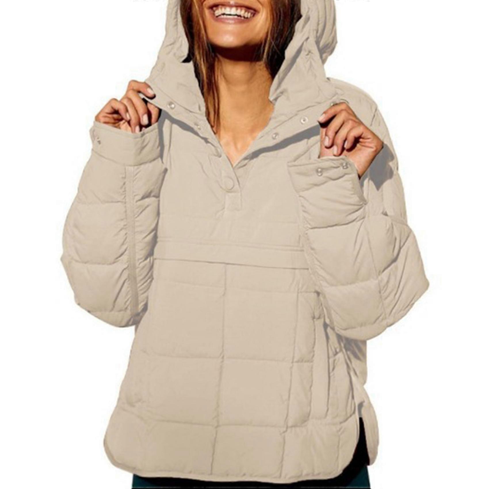 Womens Oversized Puffer Jacket Quilted Dolman Hoodies Pullover Long Sleeve Lightweight Warm Tops Coat Cream White M
