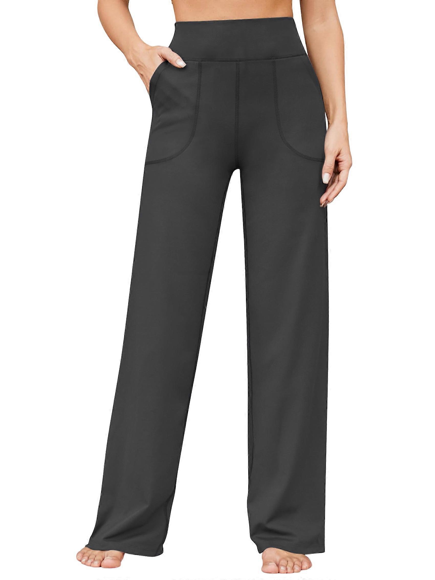 Wide Leg Pants Woman High Waist Yoga Pants with Pockets Loose Stretch Work Sweatpants Casual Lounge Black L