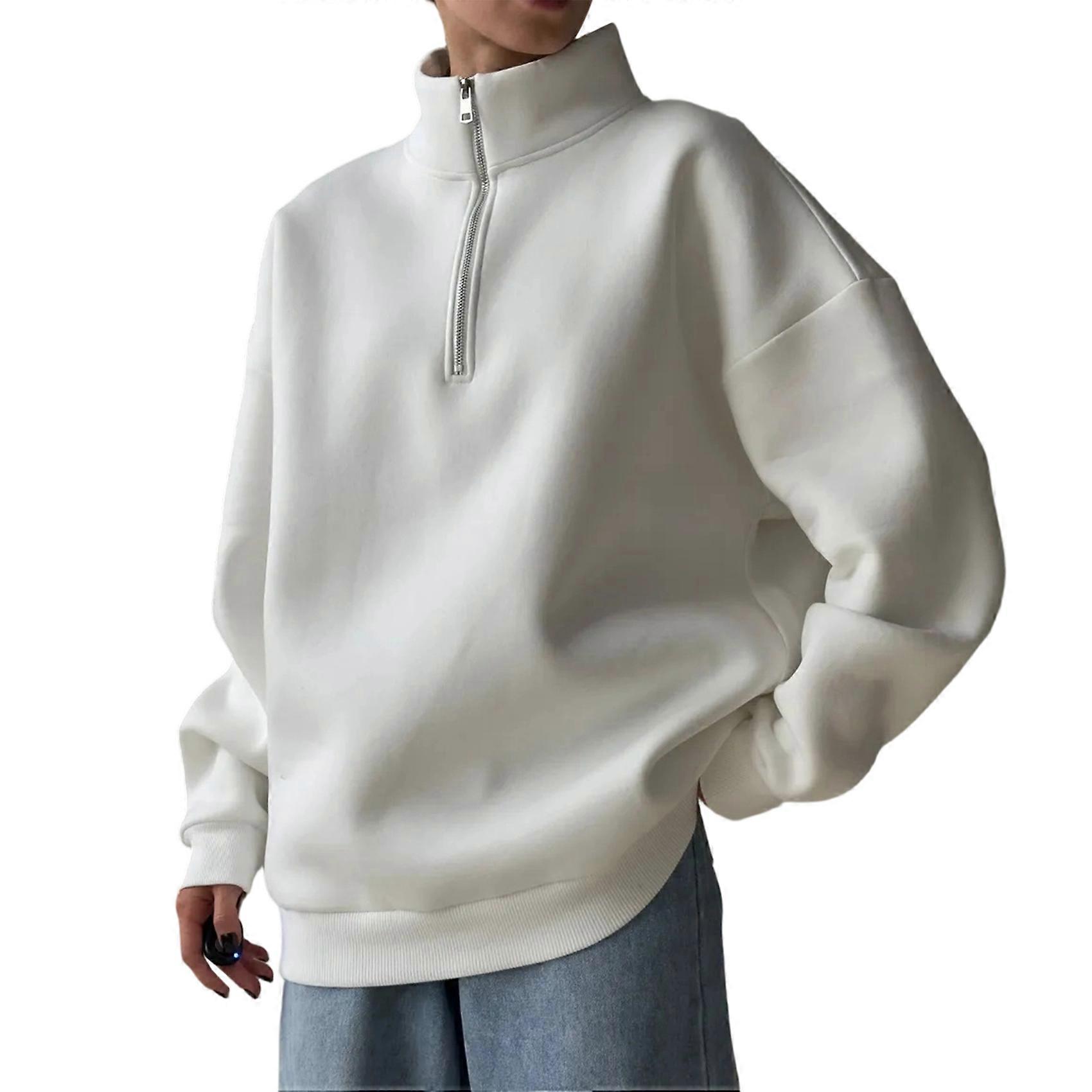 Womens Sweatshirts Half Zip Cropped Pullover Quarter Zipper Hoodies 2025 Fall Fashion Outfits White (Thin) M
