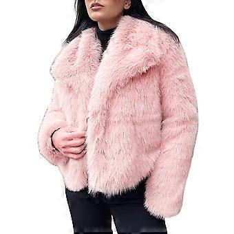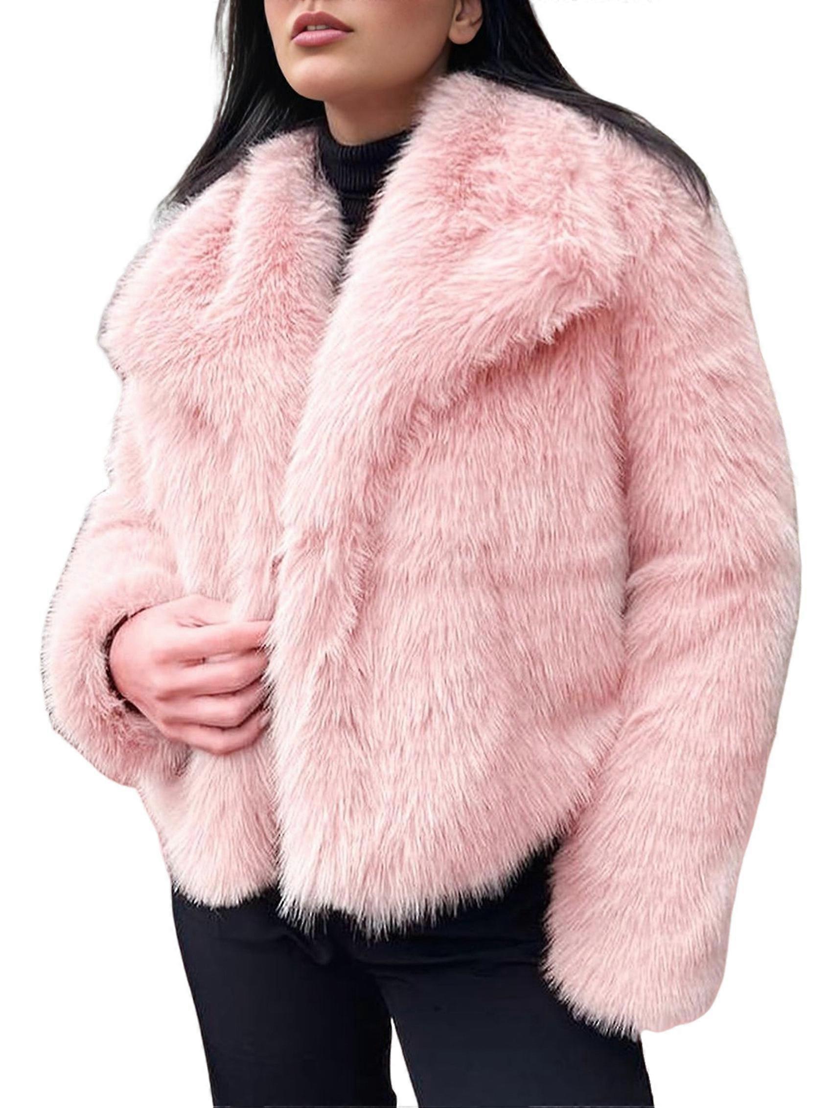 Female Faux Fur Coat Faux Fur Jacket Long Sleeve Lapel Furry Winter Jackets Parka Short Coat Pink S
