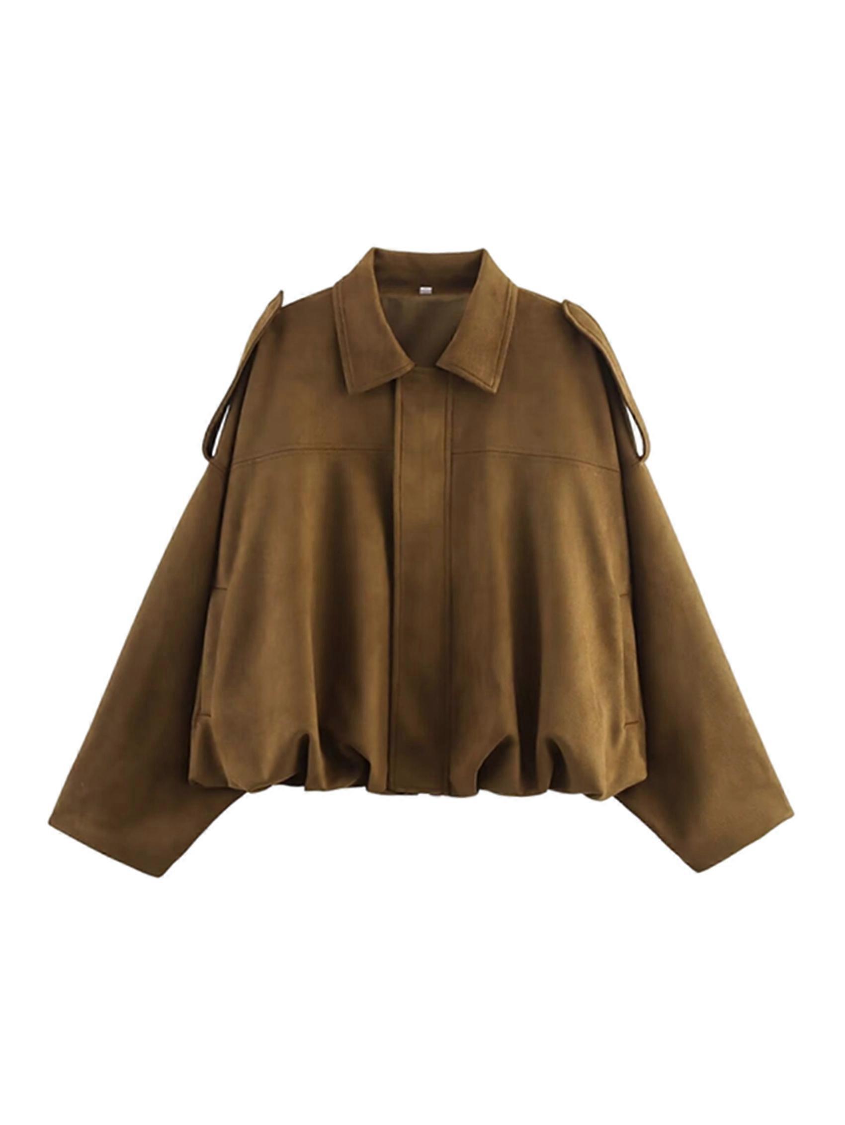 Women'S Faux Suede Jacket with Pocket Lapel Pilot Coat Casual Oversized Long Sleeves Trendy Streetwear Brown M