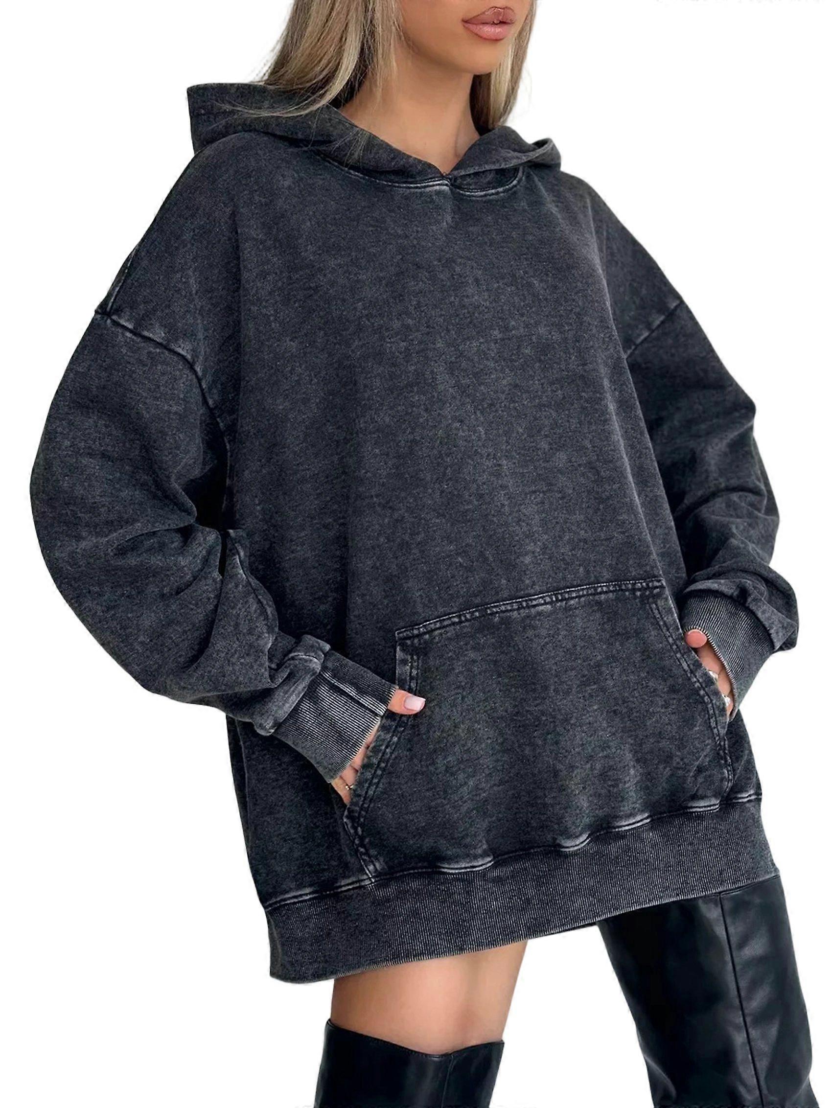 Oversized Vintage Hoodie for Women Cotton Loose Fit Hooded Sweatshirt Trendy Acid Wash Pullover Top Washed Black XXL