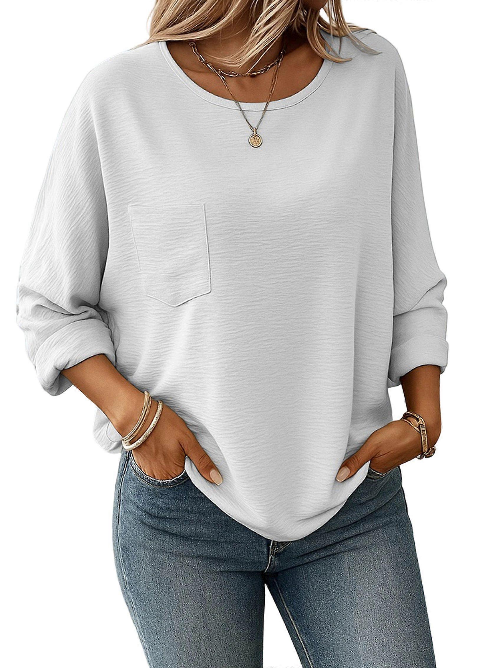 Womens Long Sleeve Crew Neck Tops Loose Fit Fall Cute T Shirts Winter Cruise Outfits Trendy Clothes White L