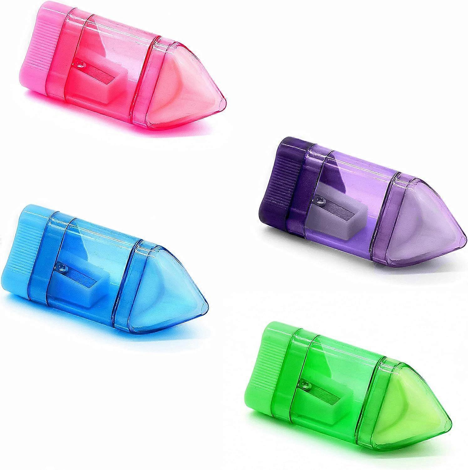 Manual Pencil Sharpener with Eraser - Compact Handheld Sharpener for #2/HB Pencils, Colorful School & Office Supplies