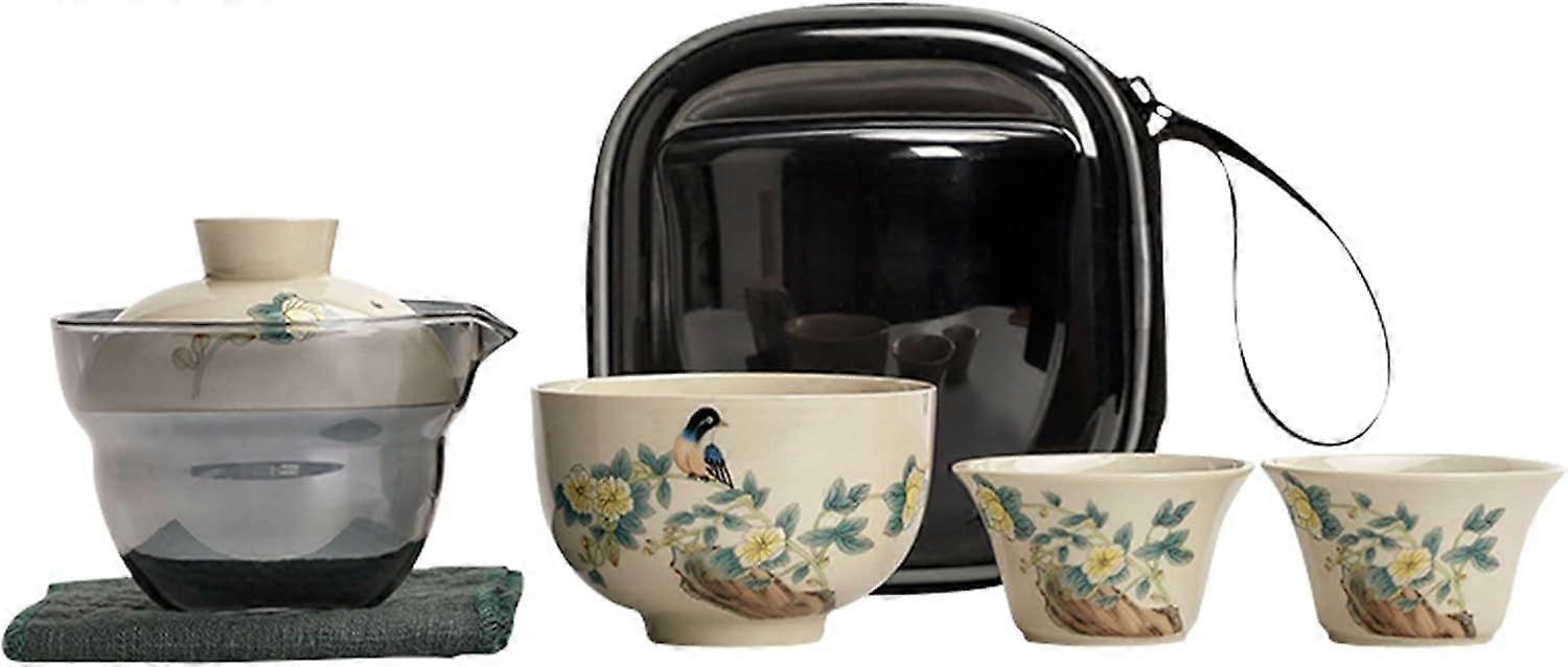 Good Luck Tea Set, Chinese Porcelain Travel Set for Adults - Vintage Style Portable Tea Service with Gift Box, Perfect for Home, Office & Gifting