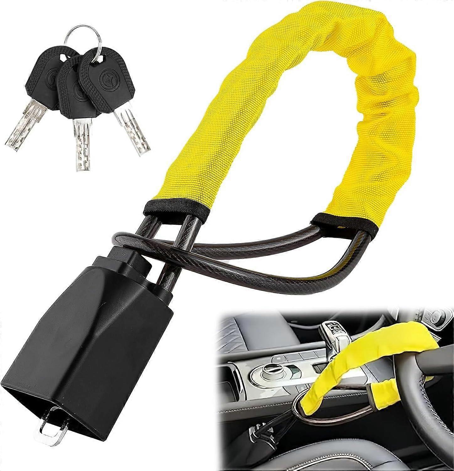 Steering Wheel Lock, High Visibility antl-Theft Security Device for Cars with 3 Keys, Universal Fit for Most Vehicles (Yellow)
